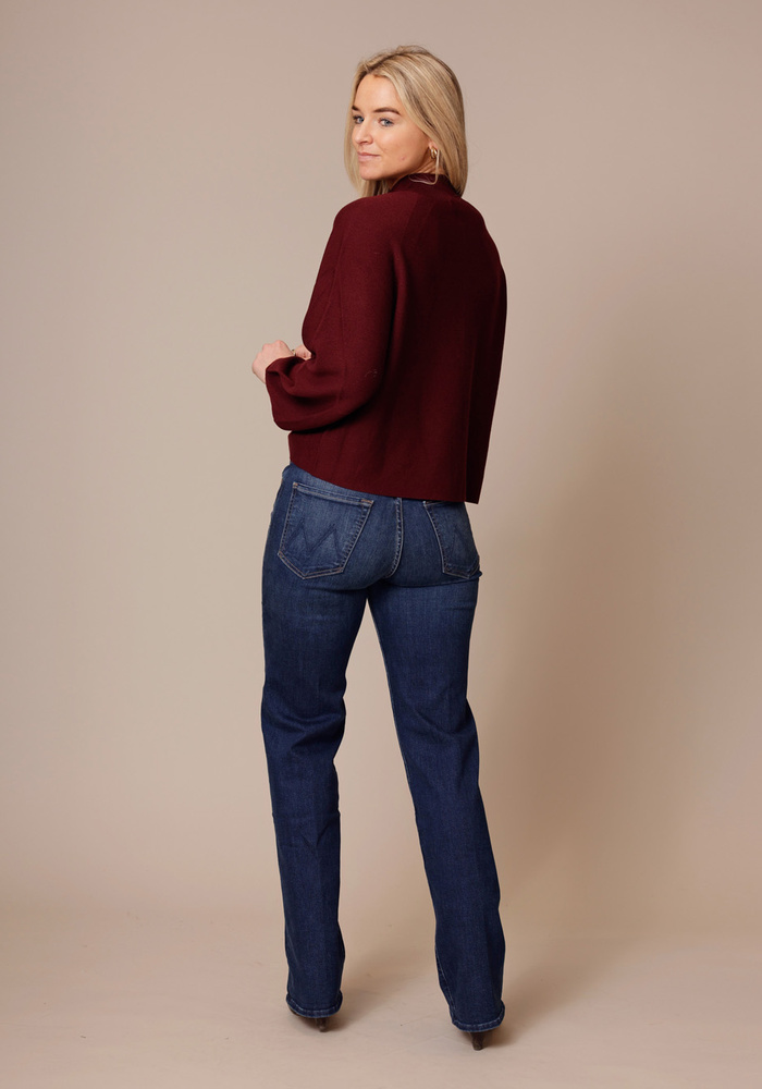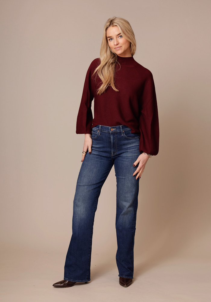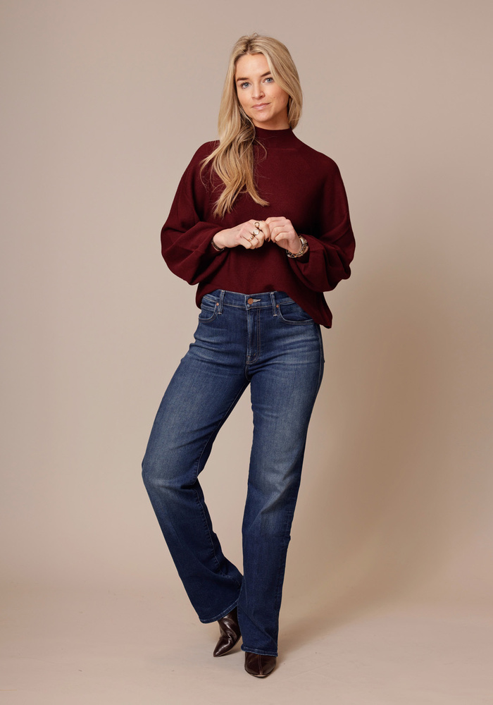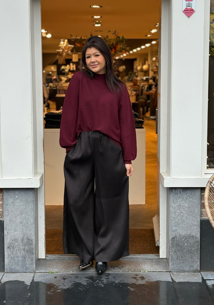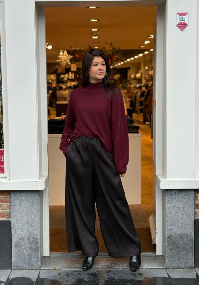 De Kimoni sweater van Drykorn is een gebreide sweater. Deze sweater heeft lange mouwen en een opstaande kraag.