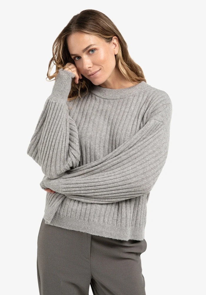 Deze trui van Yaya is een comfortabele trui met ribpatroon. De trui heeft lange mouwen en een ronde hals.
