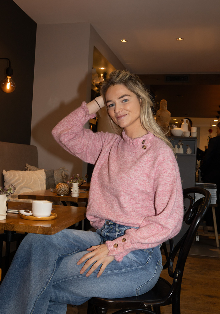 Deze heerlijk warme sweater van Musthave by Gentle heeft een hoge hals met leuke bruine knoopjes en manchetten.