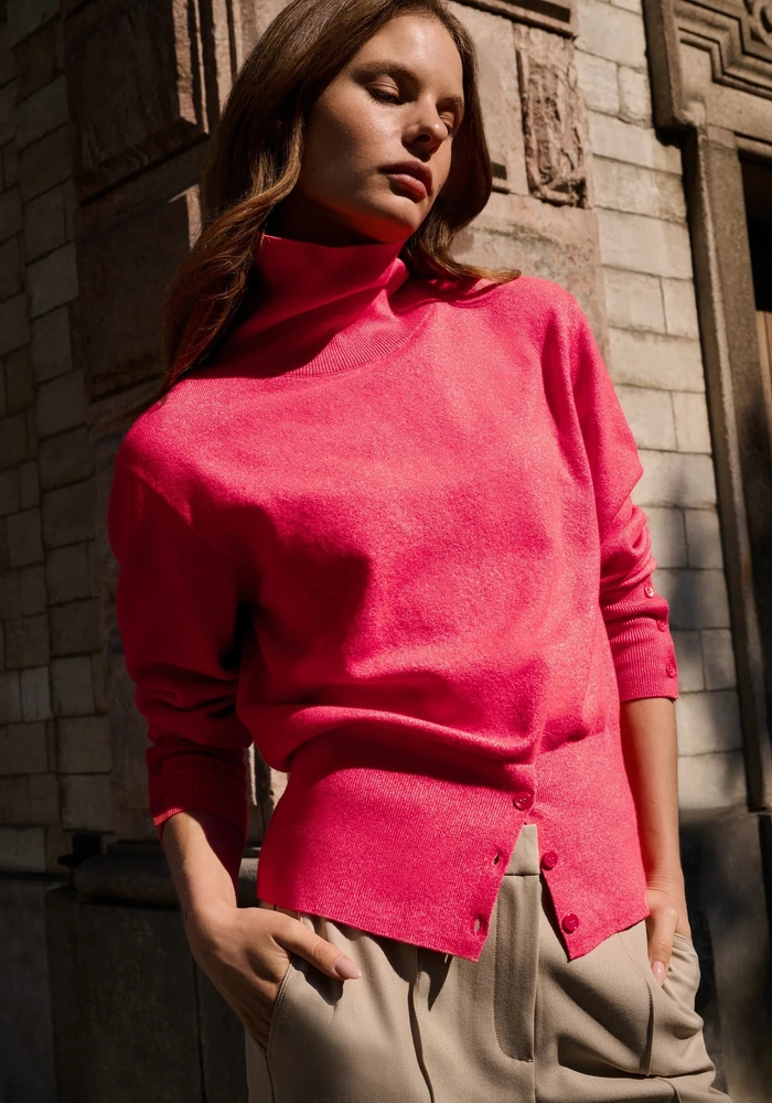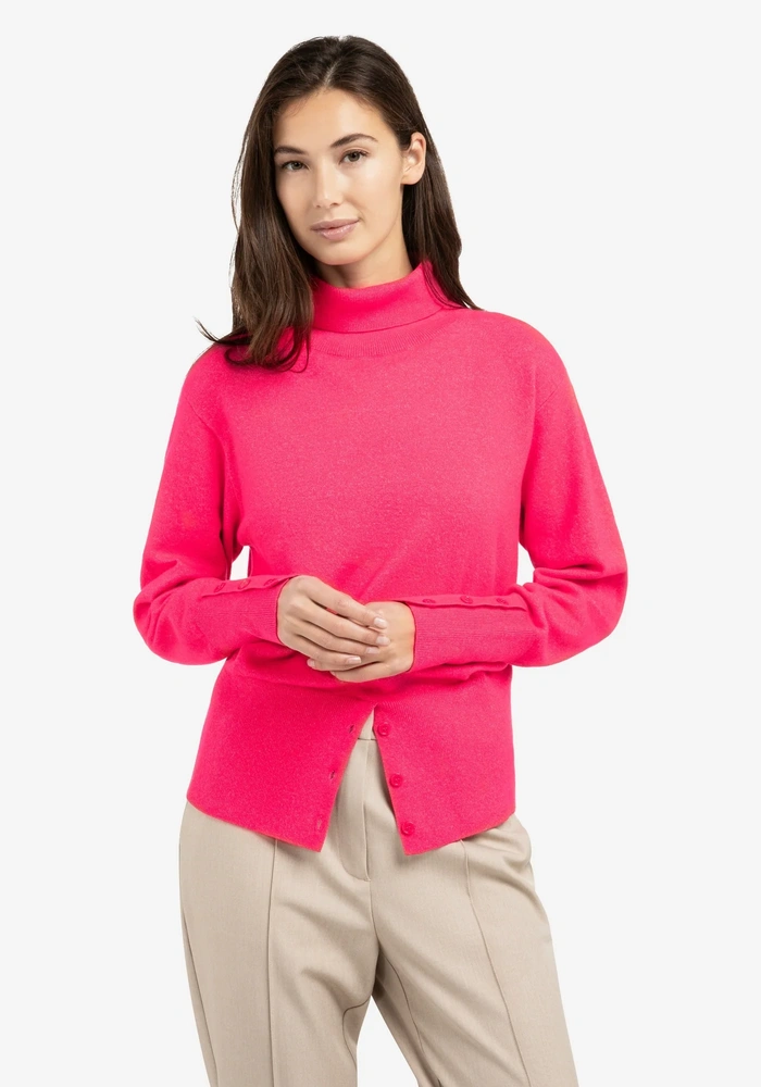 Deze elegante gebreide trui van Yaya heeft een hoge col, een losse pasvorm, lange mouwen en een aansluitende tailleboord. De knoopdetails op de tailleboord en manchetten voegen een subtiel speels accent toe. Gemaakt van zachte, comfortabele stof die gemakkelijk te combineren is.