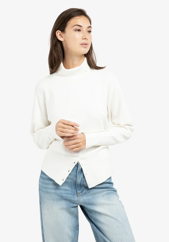 Deze elegante gebreide trui van Yaya heeft een hoge col, een losse pasvorm, lange mouwen en een aansluitende tailleboord. De knoopdetails op de tailleboord en manchetten voegen een subtiel speels accent toe. Gemaakt van zachte, comfortabele stof die gemakkelijk te combineren is.
