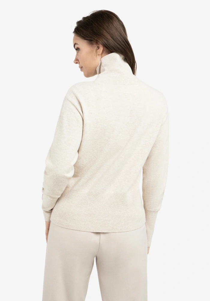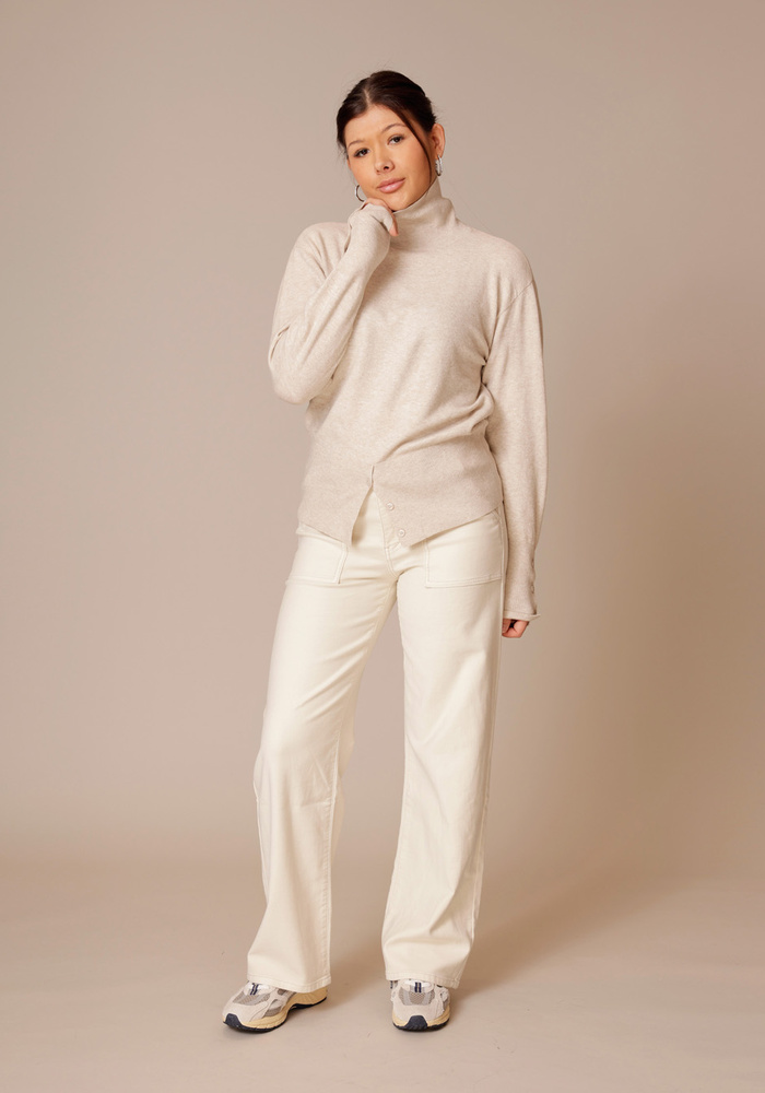 Deze elegante gebreide trui van Yaya heeft een hoge col, een losse pasvorm, lange mouwen en een aansluitende tailleboord. De knoopdetails op de tailleboord en manchetten voegen een subtiel speels accent toe. Gemaakt van zachte, comfortabele stof die gemakkelijk te combineren is.