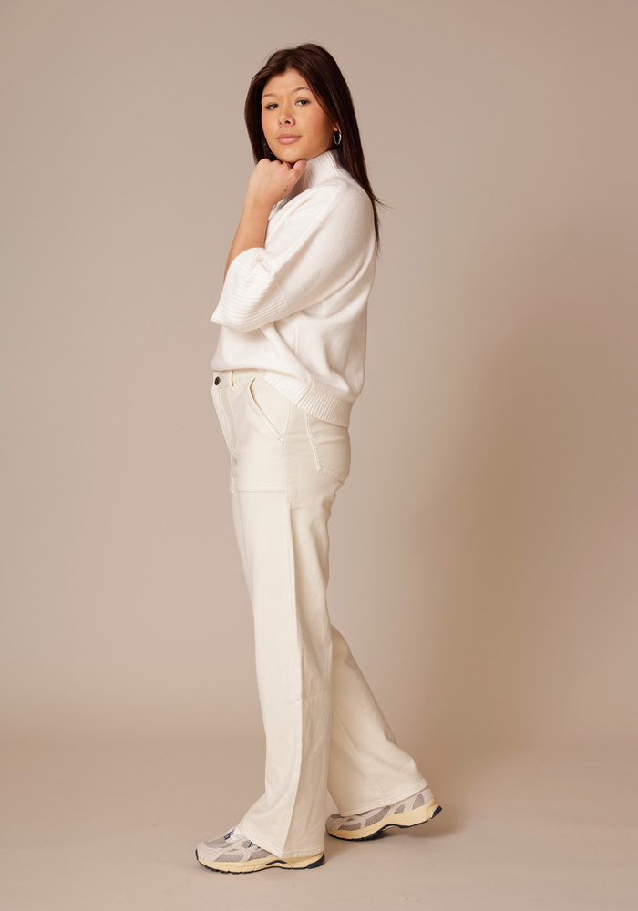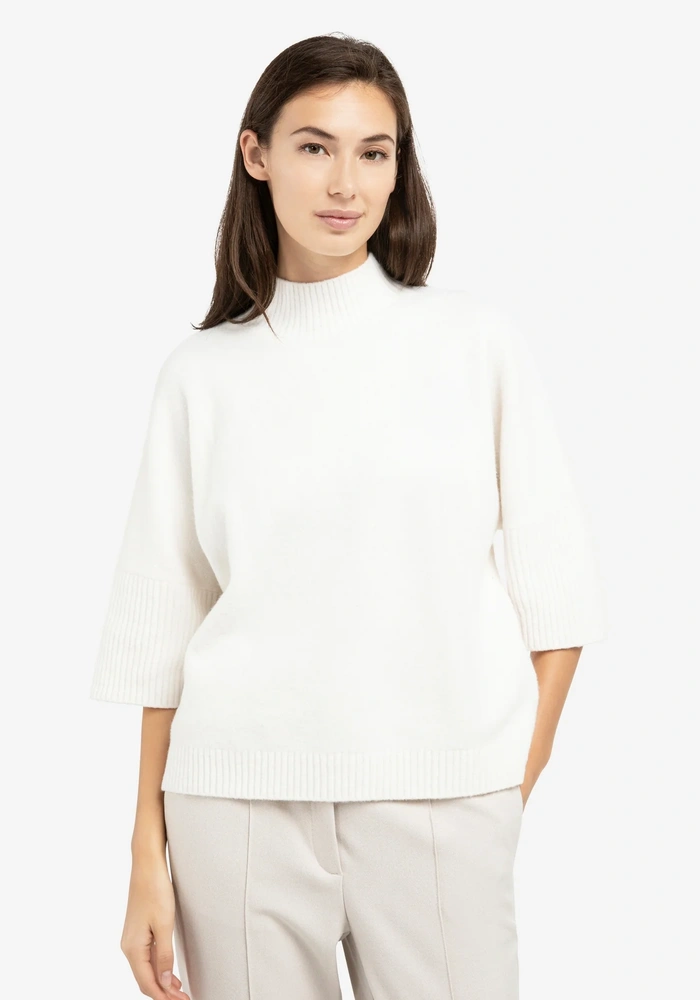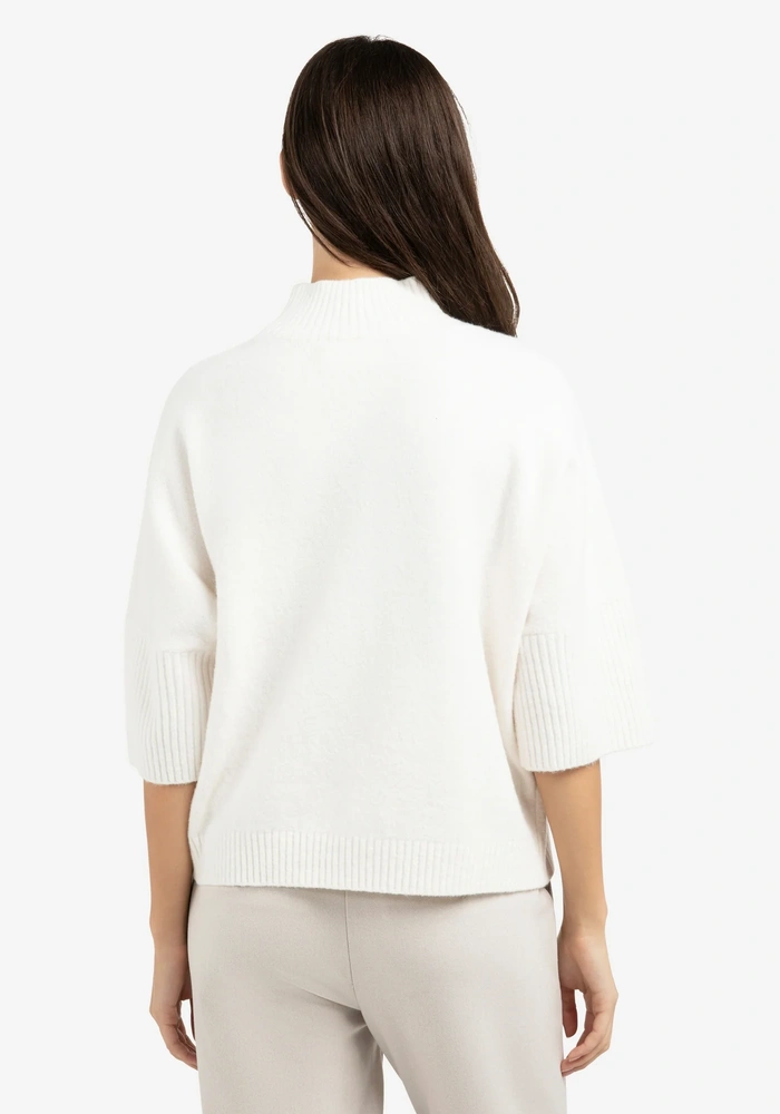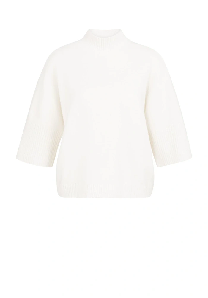 Deze trui van Yaya biedt een comfortabele, losse pasvorm en is voorzien van een geribde opstaande hals en driekwart mouwen met brede ribboorden. De zachte, gebreide stof voelt heerlijk aan op de huid, terwijl het minimalistische ontwerp en de verfijnde details van deze trui een veelzijdig item maken voor een stijlvolle, casual look.