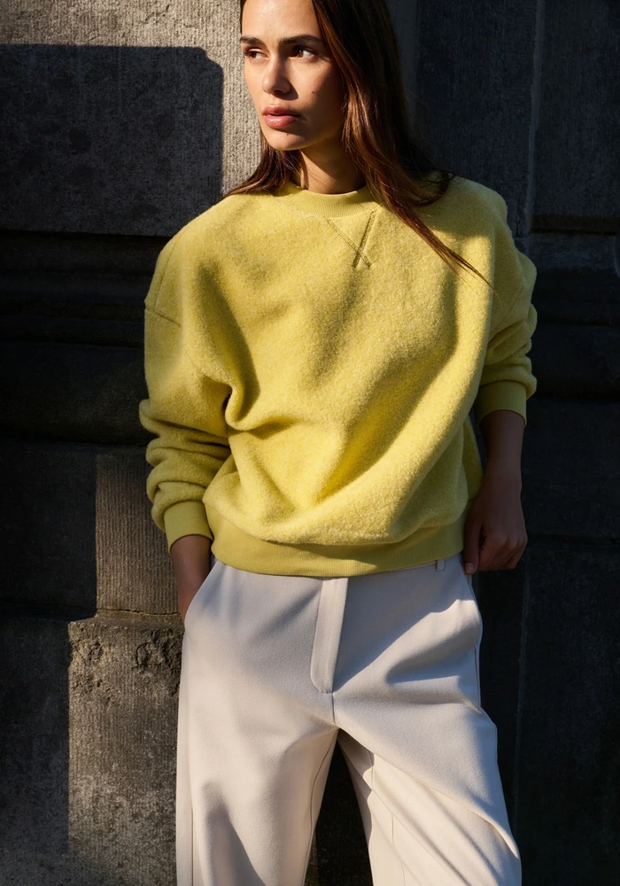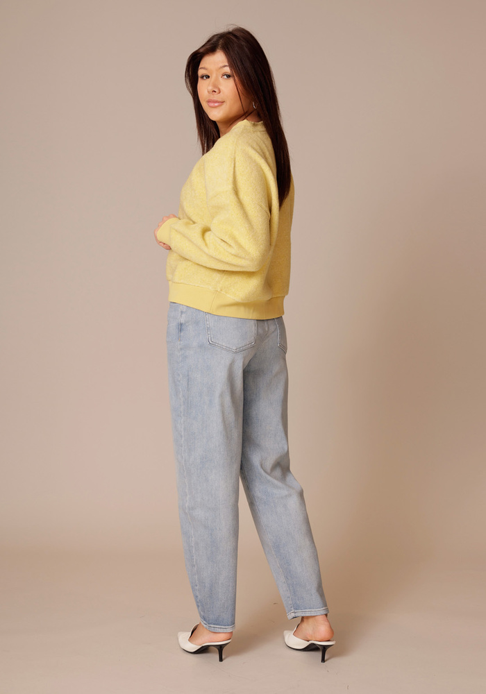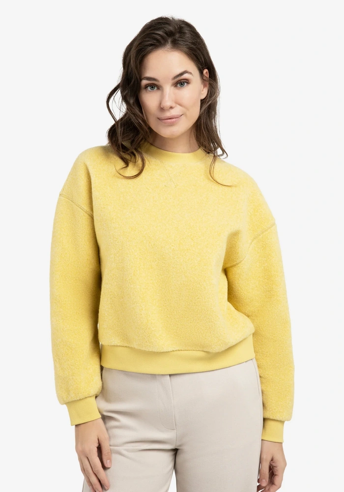Deze comfortabele teddy sweater van Yaya heeft een ruime, oversized fit met lange mouwen en een ronde hals, afgewerkt met ribbreisel. De ribboorden aan de mouwen en onderzijde geven een sportieve uitstraling, terwijl de zachte, pluizige stof zorgt voor een warm en knus gevoel. Perfect voor ontspannen en casual momenten.