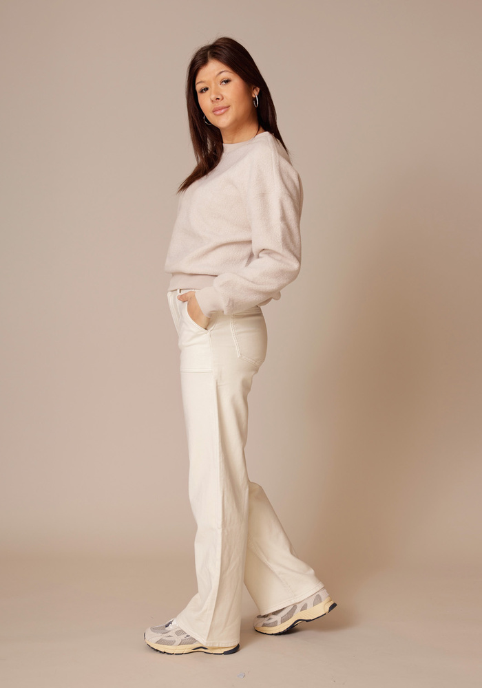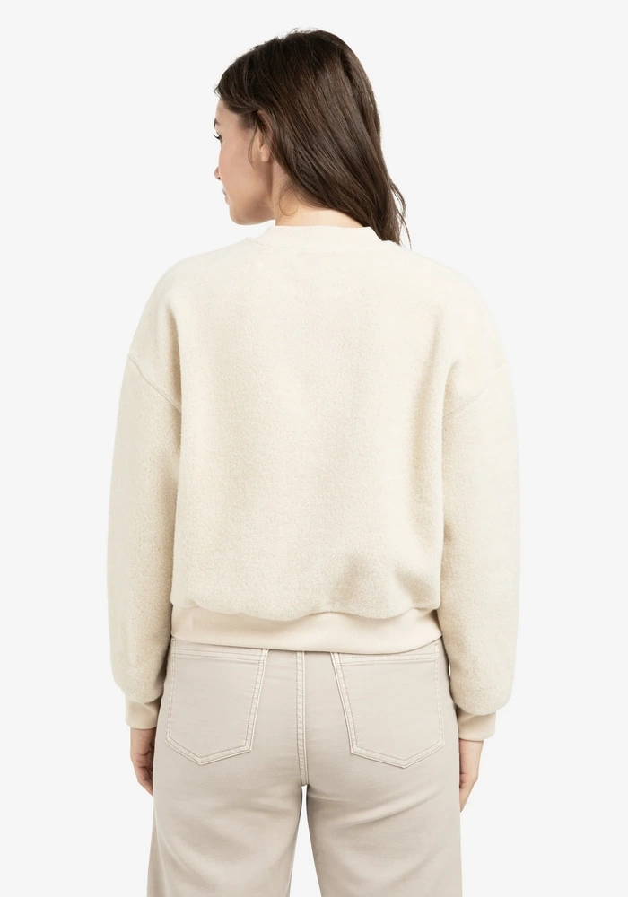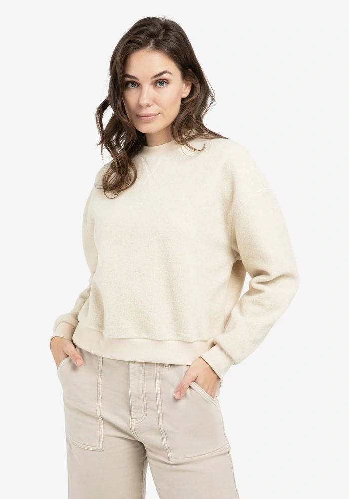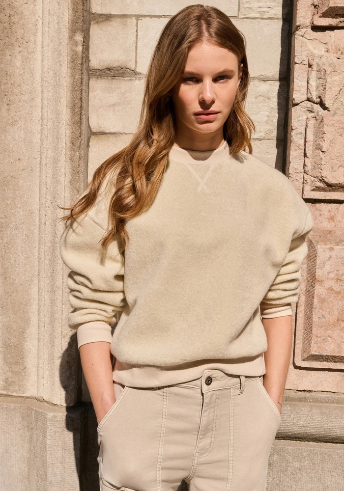 Deze comfortabele teddy sweater van Yaya heeft een ruime, oversized fit met lange mouwen en een ronde hals, afgewerkt met ribbreisel. De ribboorden aan de mouwen en onderzijde geven een sportieve uitstraling, terwijl de zachte, pluizige stof zorgt voor een warm en knus gevoel. Perfect voor ontspannen en casual momenten.