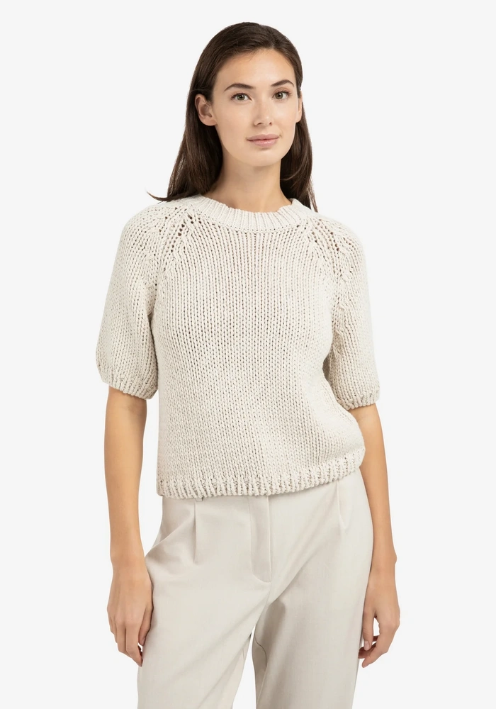 Deze grofgebreide trui is gemaakt van zachte, stevige stof en heeft korte mouwen met een ronde hals. De raglaninzet en ribgebreide details zorgen voor een nonchalante, moderne uitstraling. Dankzij de normale pasvorm is deze trui ideaal voor een casual look met een stijlvol tintje.