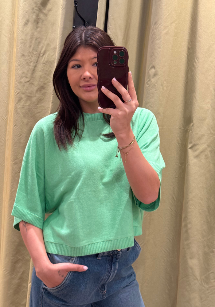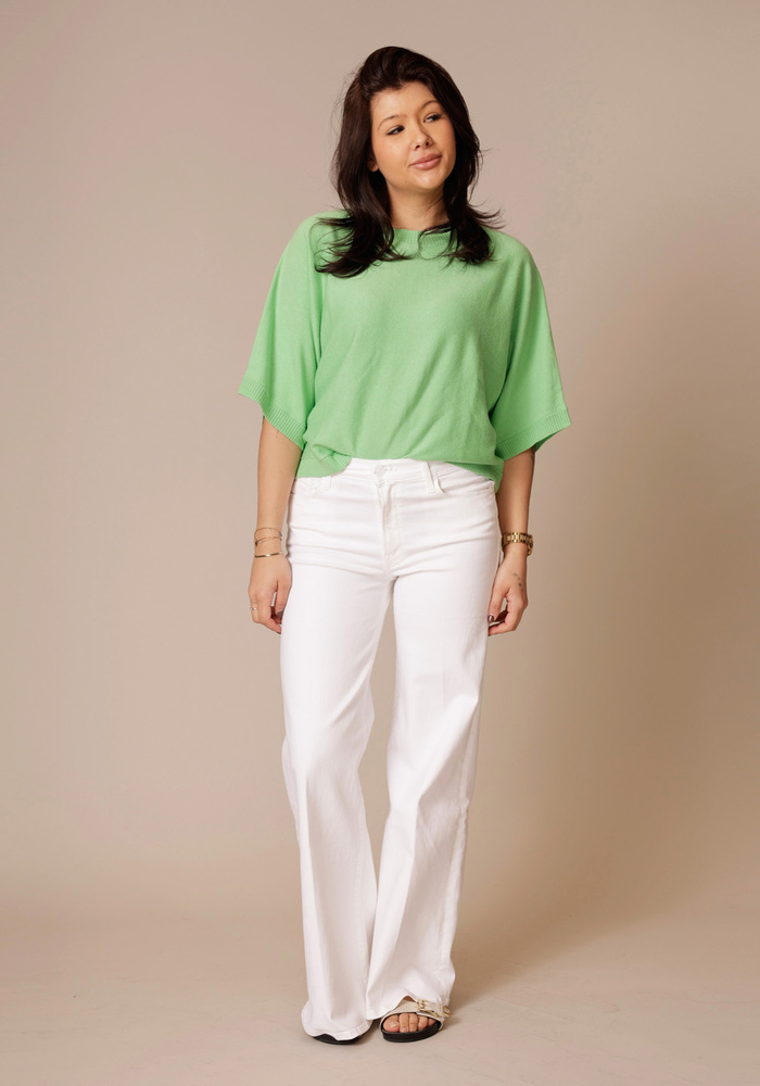 De Quinn pull van Absolut Cashmere is een soepelvallend truitje met korte wijde mouwen. Het truitje heeft een ronde hals.