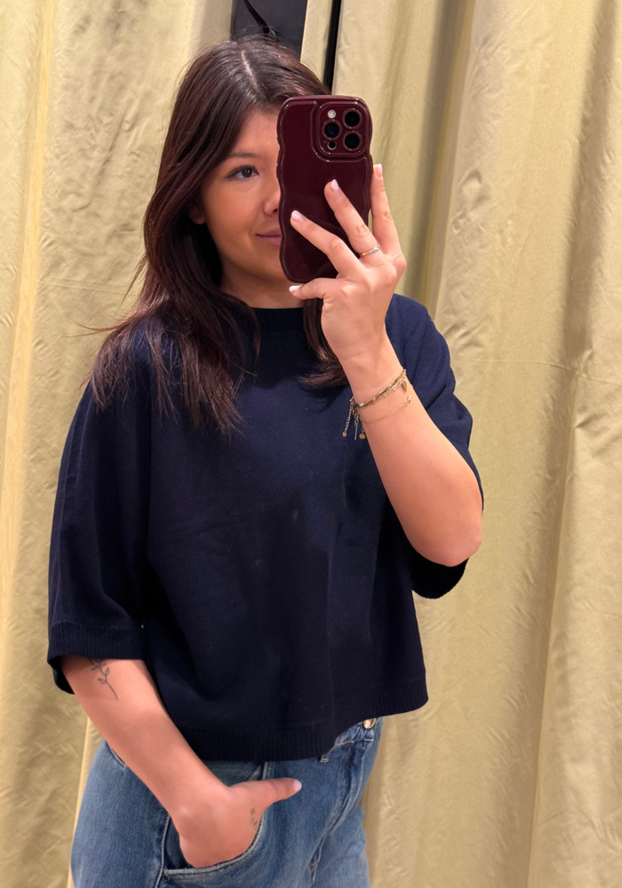 De Quinn pull van Absolut Cashmere is een soepelvallend truitje met korte wijde mouwen. Het truitje heeft een ronde hals.