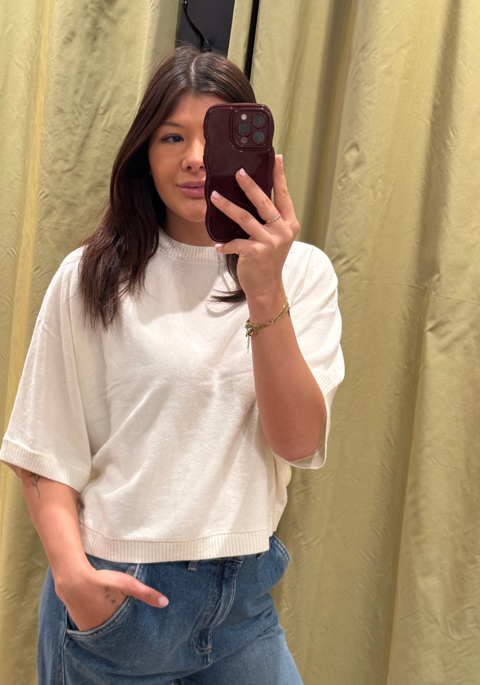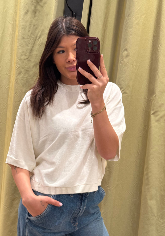 De Quinn pull van Absolut Cashmere is een soepelvallend truitje met korte wijde mouwen. Het truitje heeft een ronde hals.
