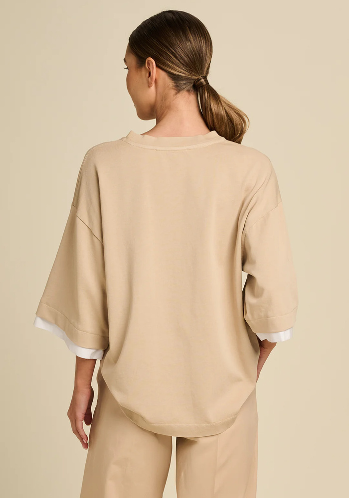 Het Travel T-shirt is een veelzijdige must-have met een speels tweelaags ontwerp voor een extra stijlvol effect. Dankzij de comfortabele pasvorm en strakke lijnen combineert het moeiteloos gemak met een moderne uitstraling.