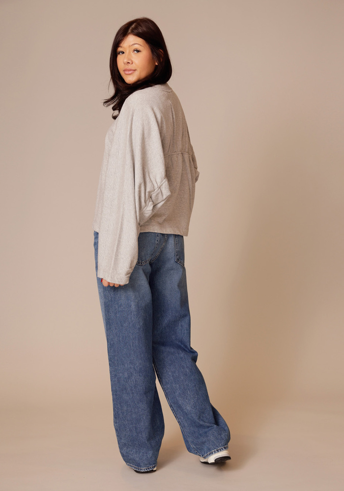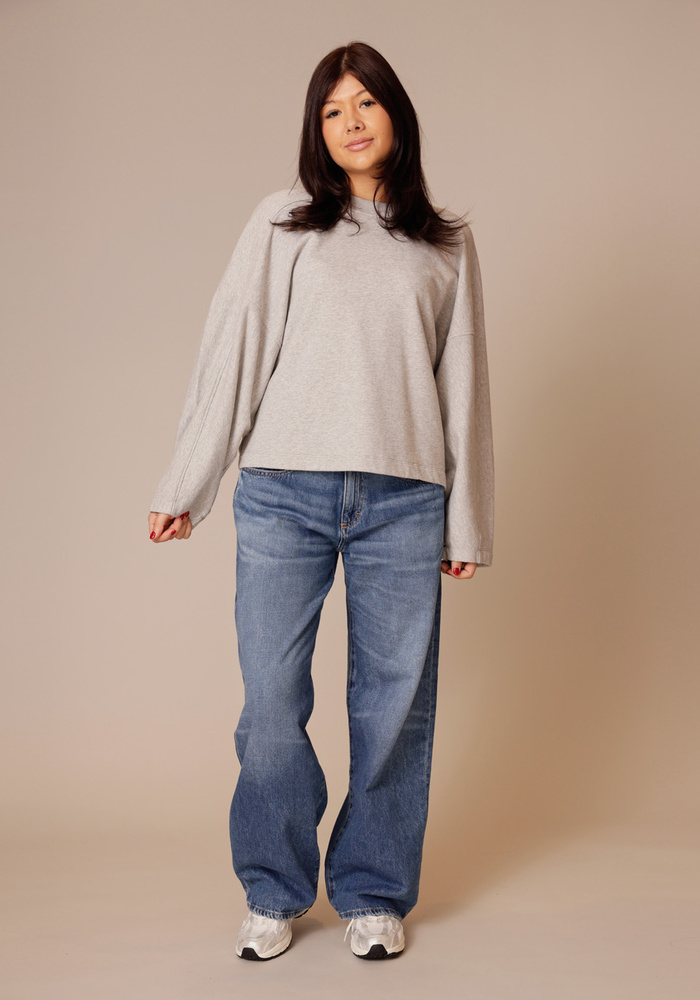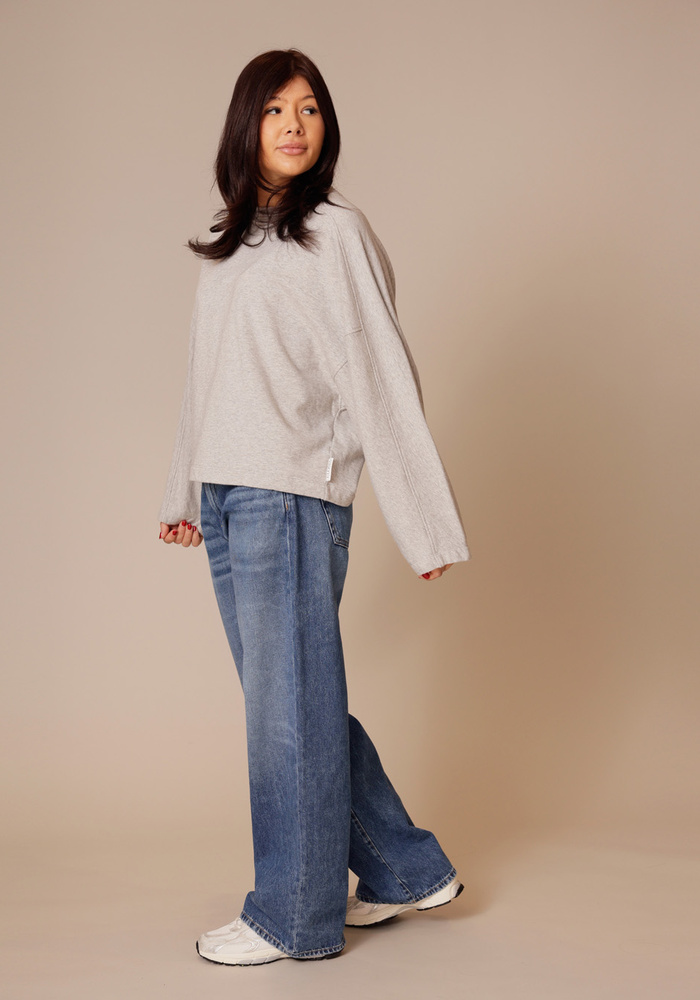 Het Gathered sweatshirt van Closed is een oversized grijze sweater. De sweater heeft lange mouwen en details op de achterkant.