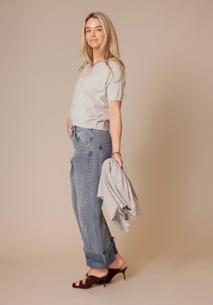 De v-hals sweater van Noman'sland is gemaakt van zacht katoen die los valt.