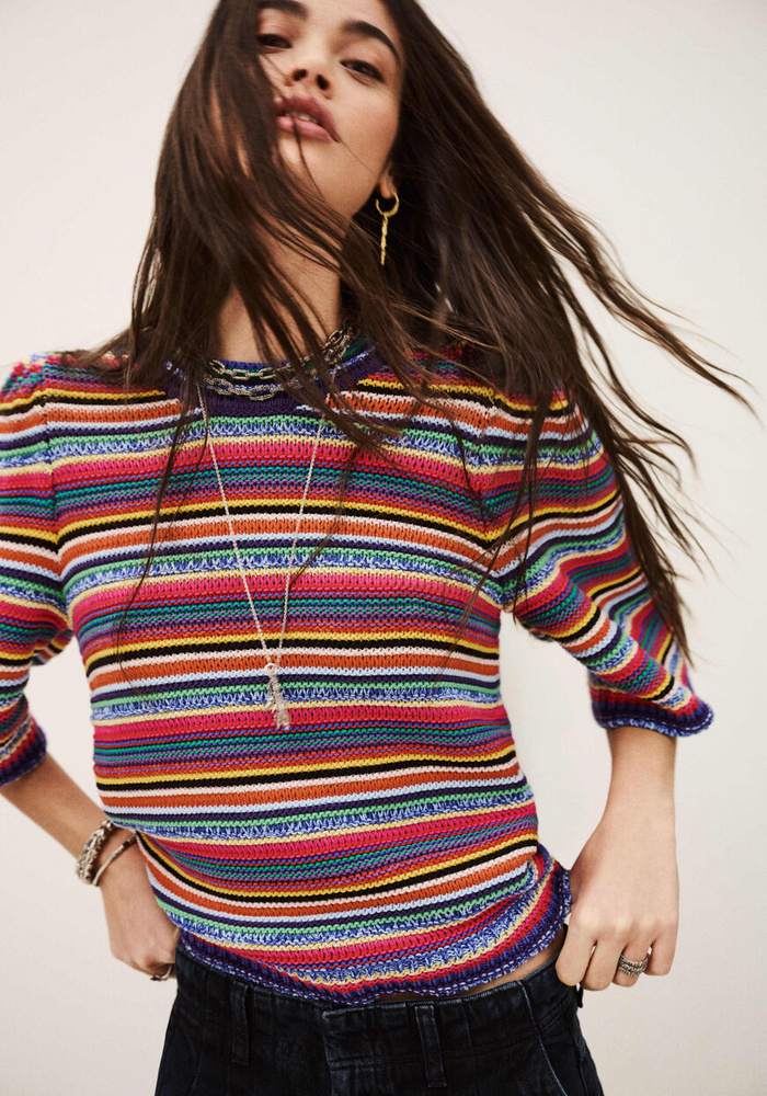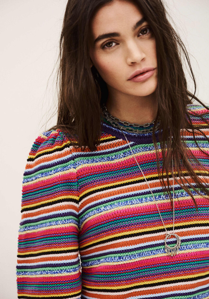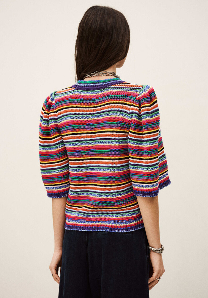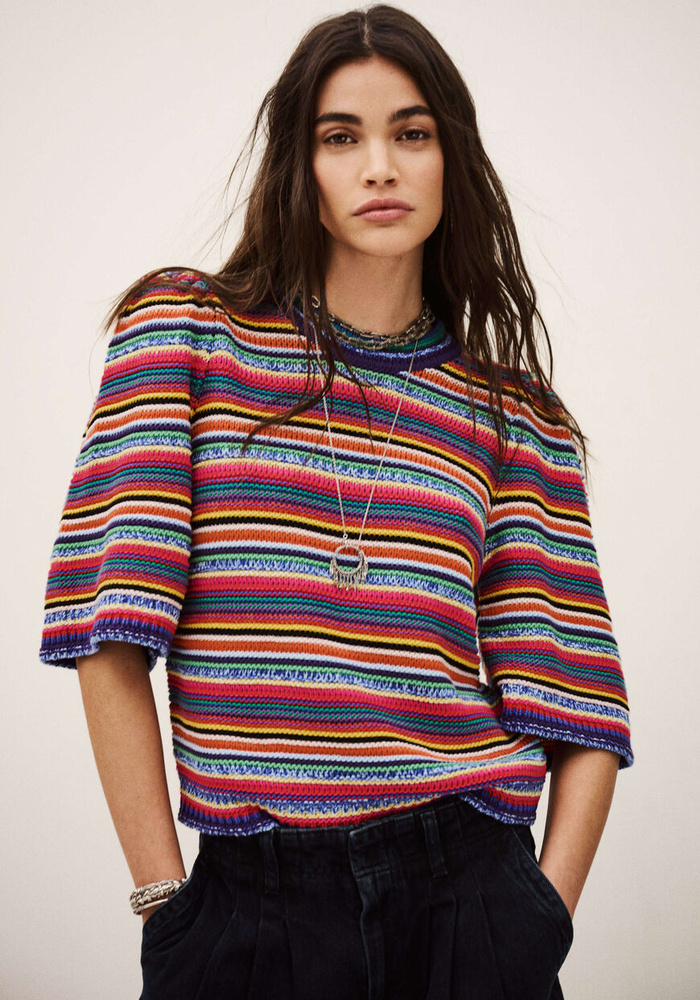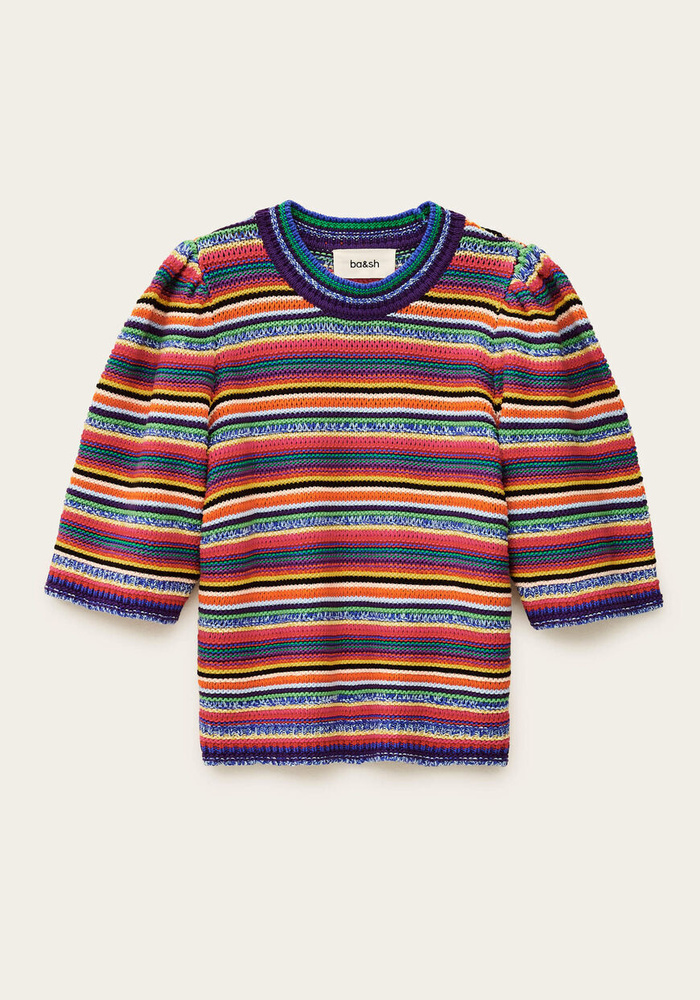 De Farfaela pull van Ba&sh is een kleurrijke gebreide trui. De trui heeft korte mouwen en een ronde hals.