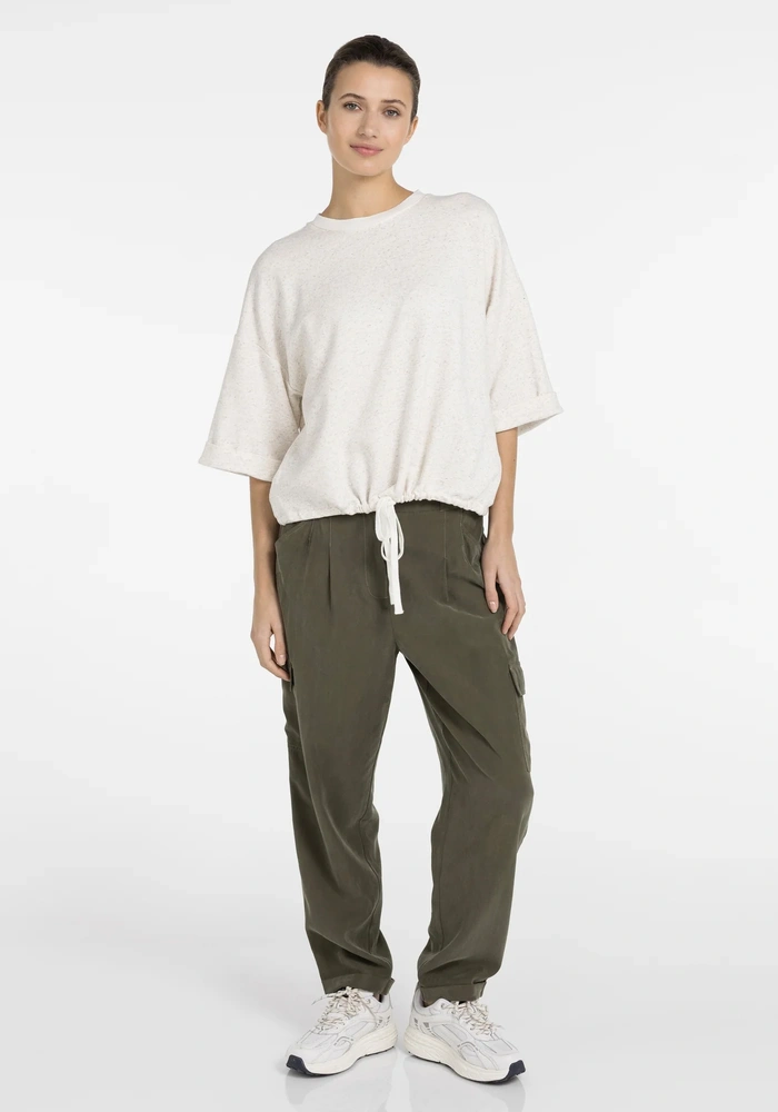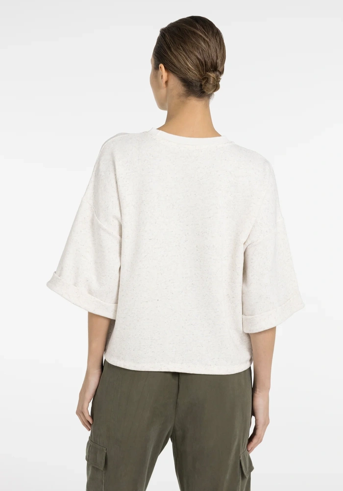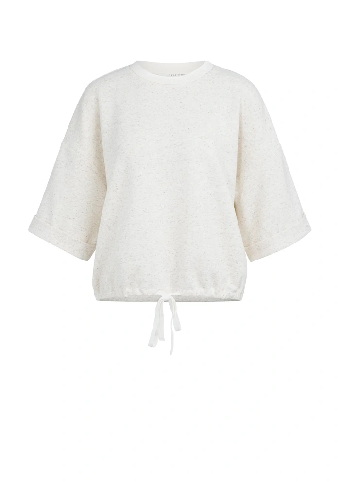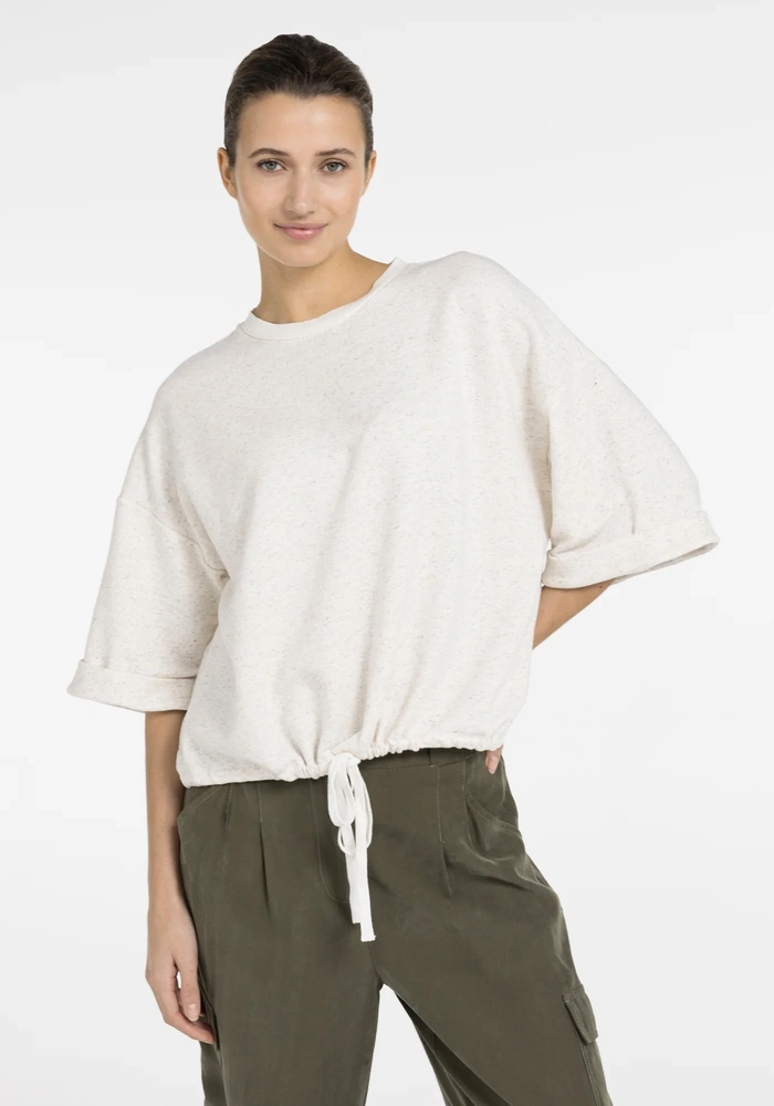 Losse sweatshirt van Yaya top van zachte, licht gemêleerde sweatstof, met korte wijde mouwen, ronde hals en verstelbaar strikkoord in de zoom. Ontspannen pasvorm voor een casual, comfortabele look.