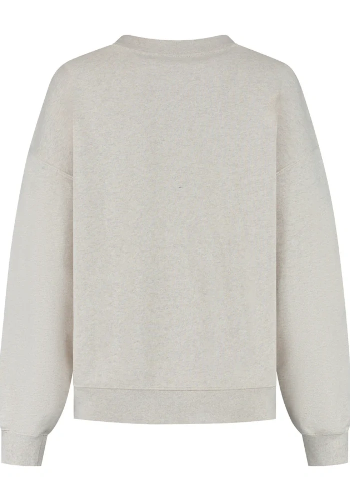 De Joelle sweater van Deblon is een oversized beige sweater. De sweater heeft lange mouwen en een ronde hals.