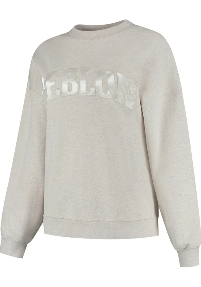 De Joelle sweater van Deblon is een oversized beige sweater. De sweater heeft lange mouwen en een ronde hals.