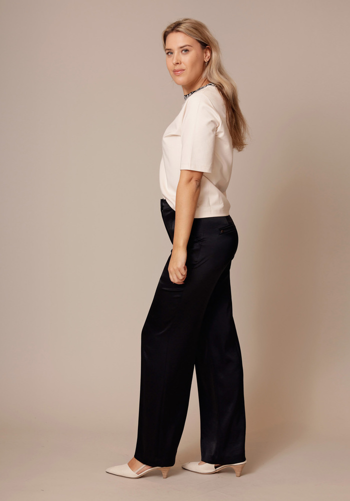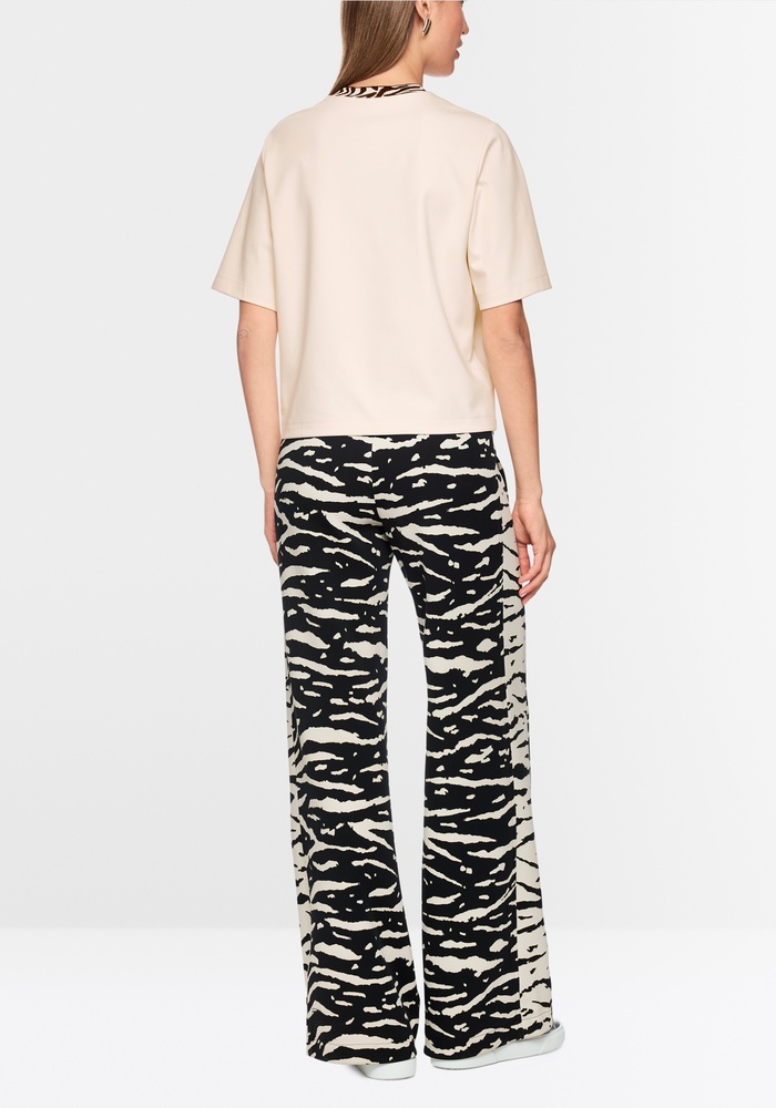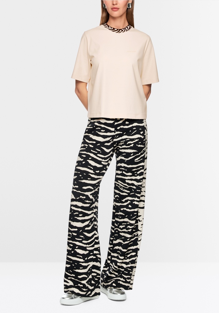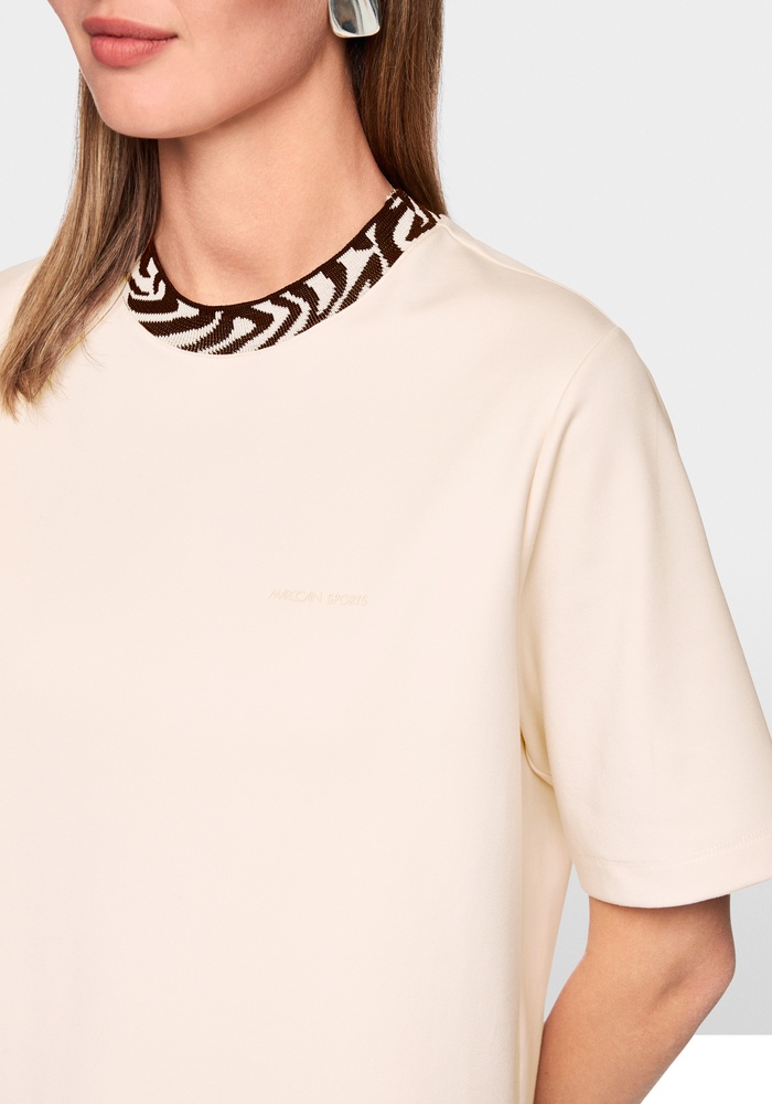 Dit casual T-shirt met rechte pasvorm van Marccain heeft iets langere mouwen. Het shirt is gemaakt van een zachte mix met katoen en daardoor aangenaam zacht om te dragen. De kraag is uitgevoerd in een contrasterende kleur.