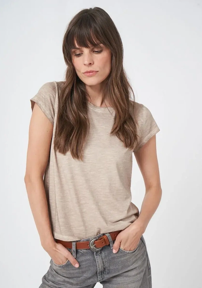 Dit comfortabele topje is gemaakt van een zachte katoenmelange en heeft een ronde hals en korte kapmouwen voor een subtiele, vrouwelijke uitstraling. Het getailleerde model zorgt voor een aansluitende pasvorm die de vormen elegant benadrukt.