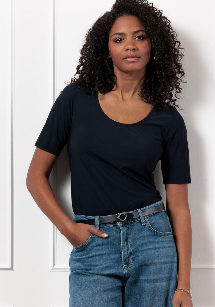 Het Sascha shirt van Studio Anneloes is een tijdloos en veelzijdig kledingstuk dat niet mag ontbreken in je garderobe. Met een ronde hals en korte mouwen heeft deze top een minimalistische, maar elegante uitstraling.