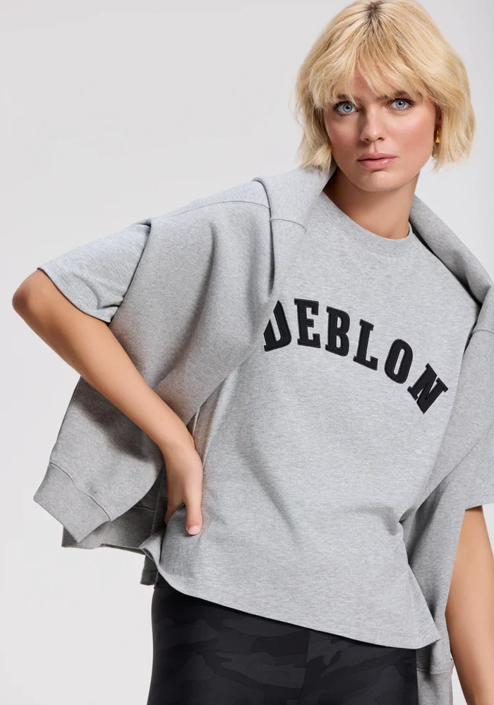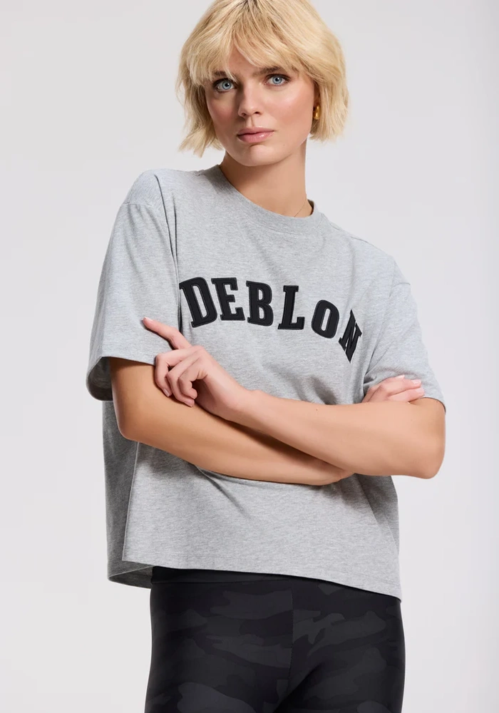 Go Team Deblon! Het Lou T-shirt in Grey Melange slaat de brug tussen fashion en sportswear. Met leggings, trackpants of jeans – dit boxy 100% katoenen shirt voelt altijd comfortabel. De Deblon-patch maakt de sporty look compleet.