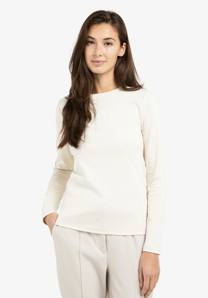 Deze longsleeve van Yaya is vervaardigd uit een stevige katoenmix en heeft een ronde hals met lange mouwen. De aansluitende pasvorm creëert een strakke, gestroomlijnde look, terwijl de dikkere stof zorgt voor een luxe en comfortabel gevoel. Een tijdloze basic van hoge kwaliteit, perfect om los te dragen of in laagjes te stylen.