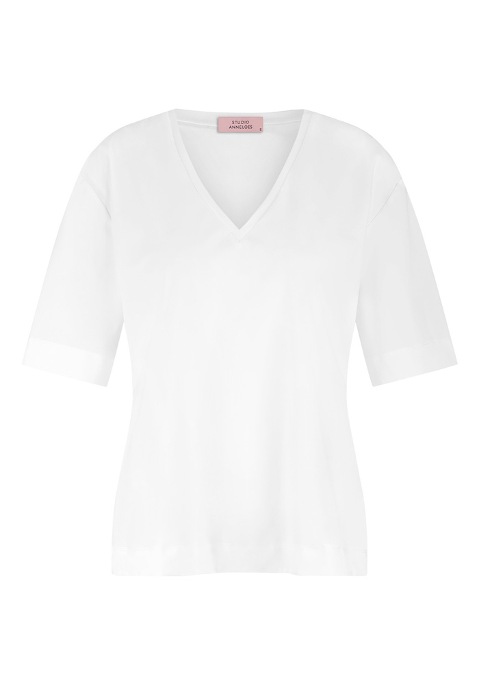 Het Roller shirt van Studio Anneloes is een vrouwelijke basic die zich eindeloos laat combineren. In Dark Blue heeft het shirt een frisse, zachte uitstraling, net zo stijlvol als zwart. De diepe V-hals en soepele pasvorm geven je outfit een elegante uitstraling met een comfortabel draaggevoel.
