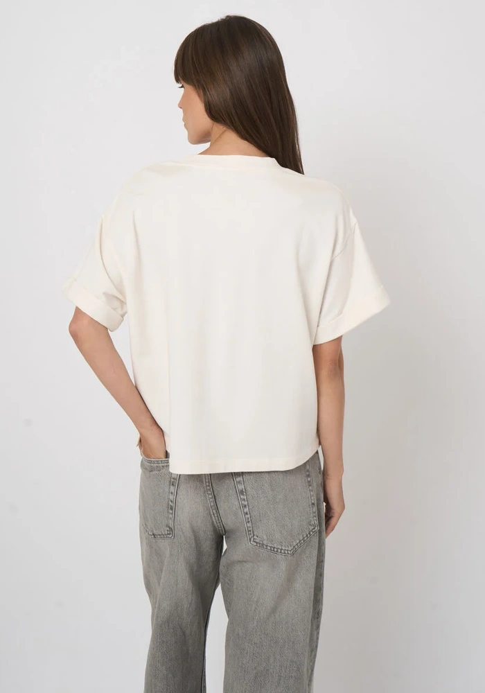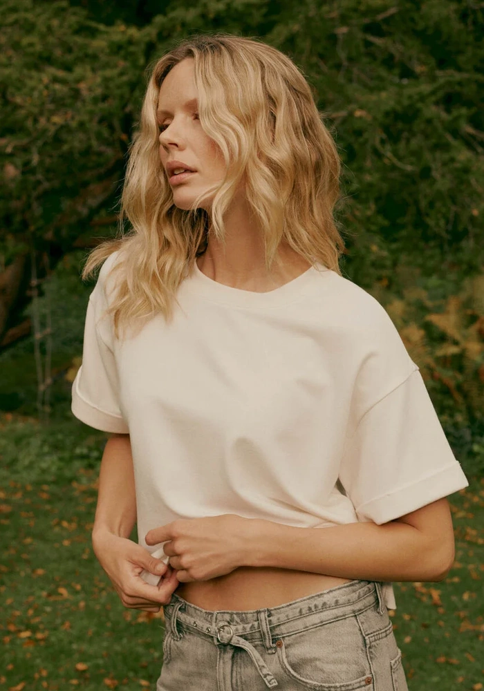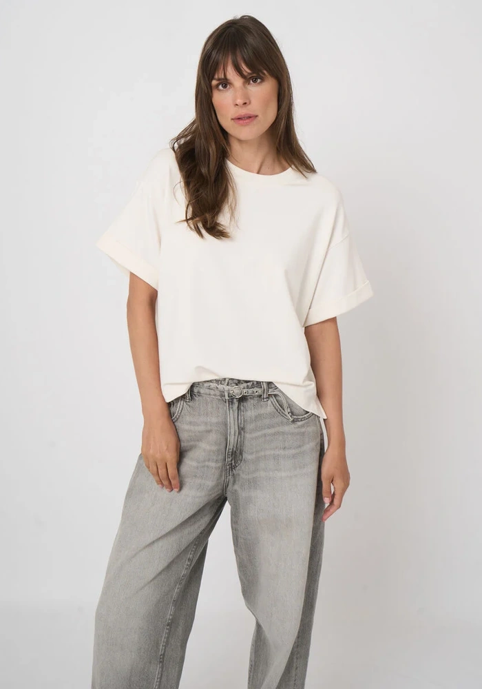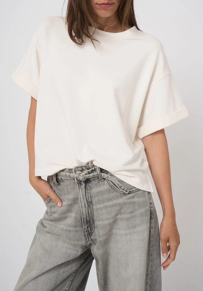 Dit T-shirt van Repeat is uitgevoerd in comfortabele Franse badstof (French terry), wat zorgt voor een zachte touch en een ontspannen draaggevoel. De ronde halslijn en de opgerolde korte mouwen geven het ontwerp een nonchalante uitstraling.