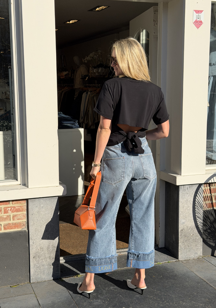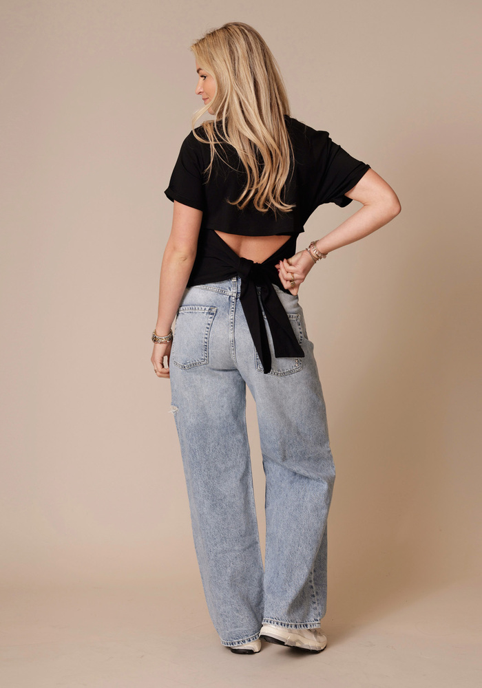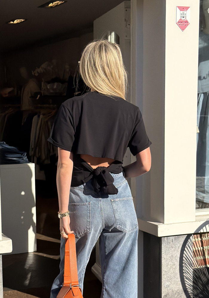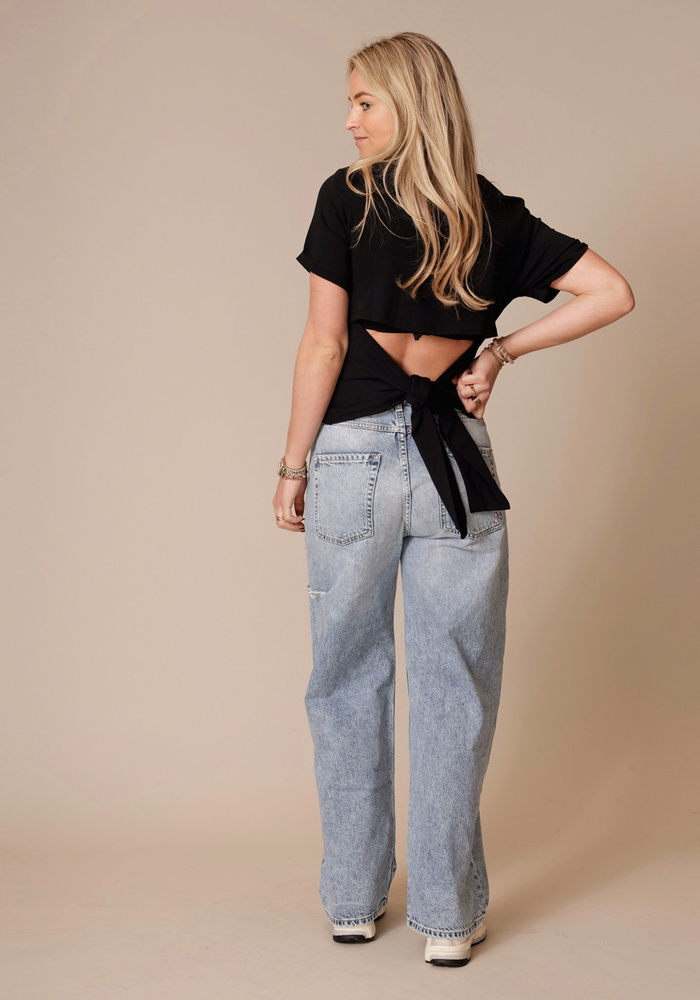 De Blanca tee van Ba&sh is een t-shirt met korte mouwen en een ronde hals. Het t-shirt heeft een open rug met strikdetail aan de achterzijde.