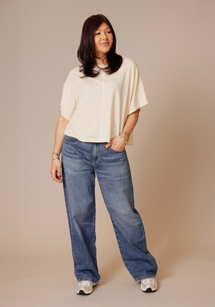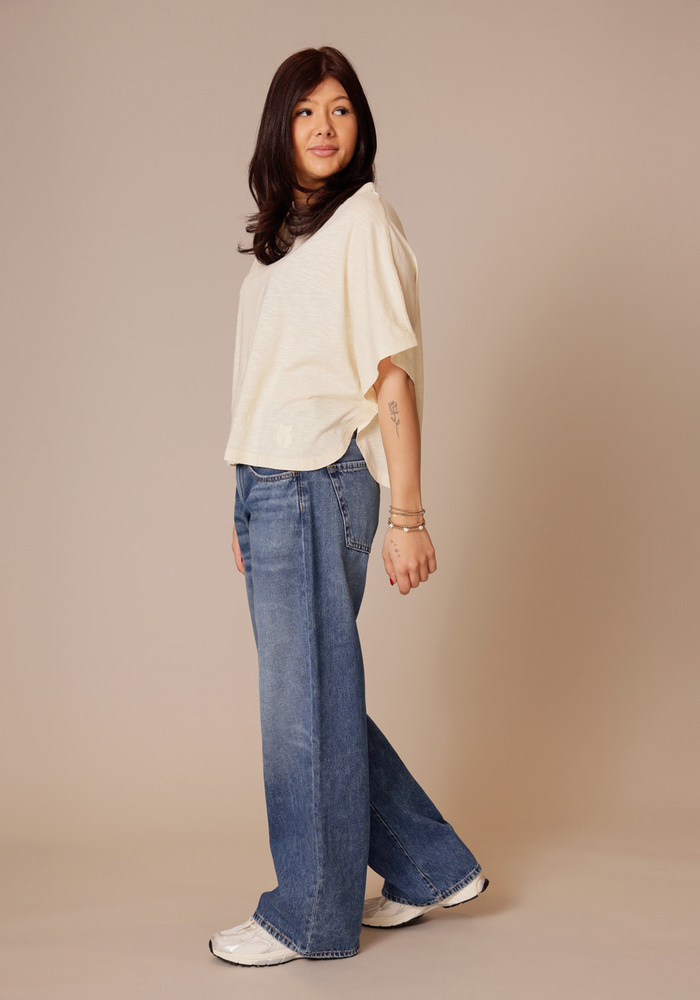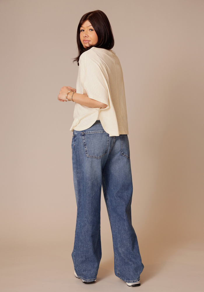 Het Cacia t-shirt van Ba&sh is een wijdvallend t-shirt met korte mouwen. Het t-shirt heeft korte splitjes aan de zijkanten.