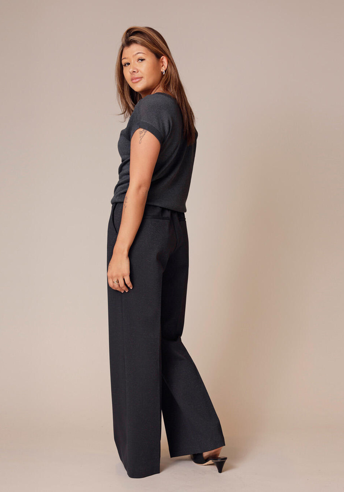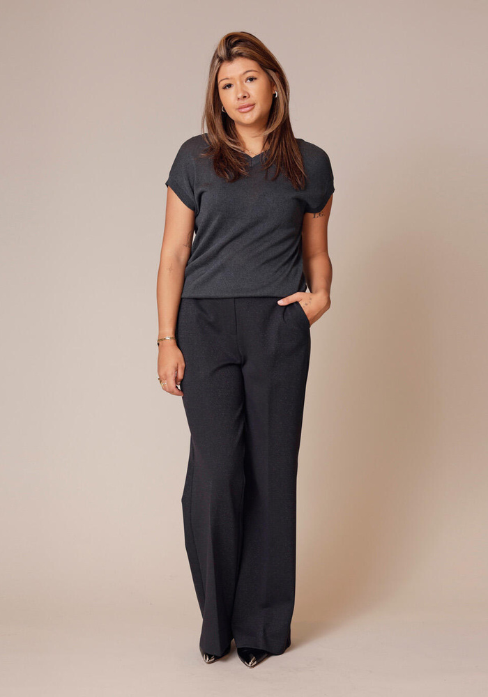 De Dion pullover van Beaumont is een elegante top met korte mouwen en een v-hals. De top heeft een subtiele glitter.