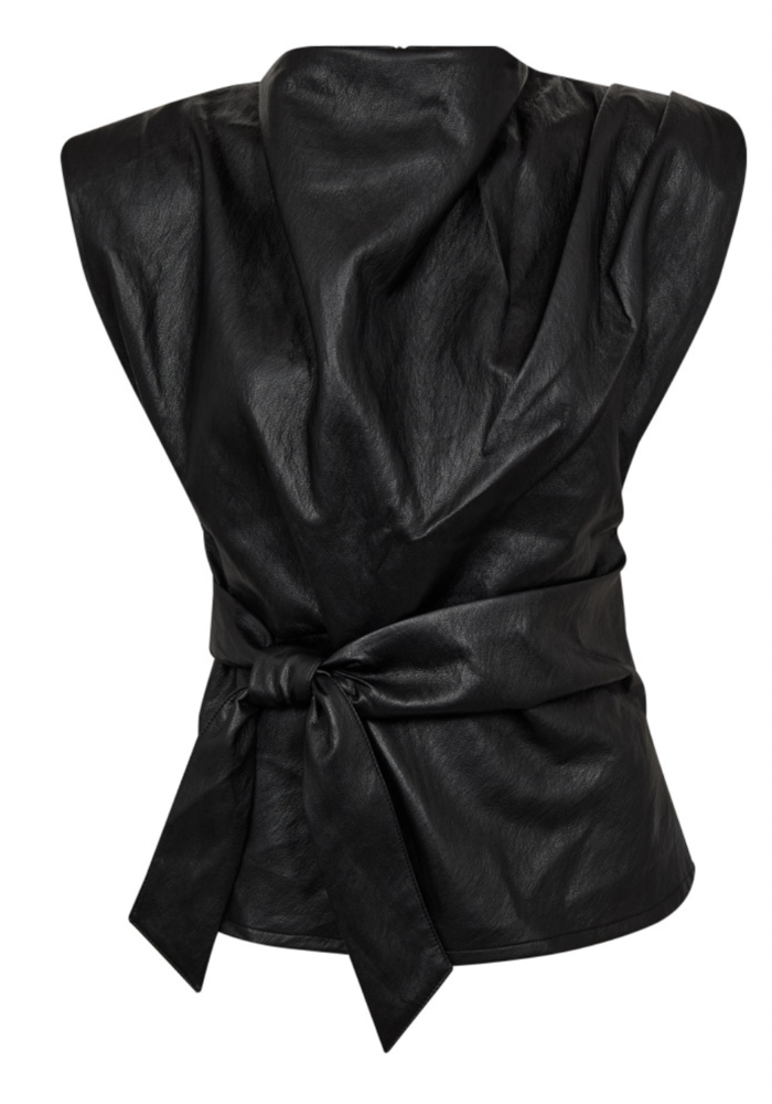 De zwarte Gitt-top van Co’Couture heeft een subtiele glans en een elegante uitstraling.