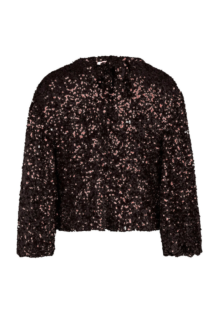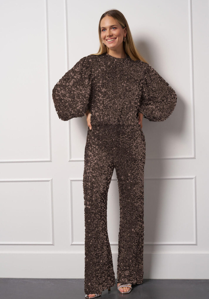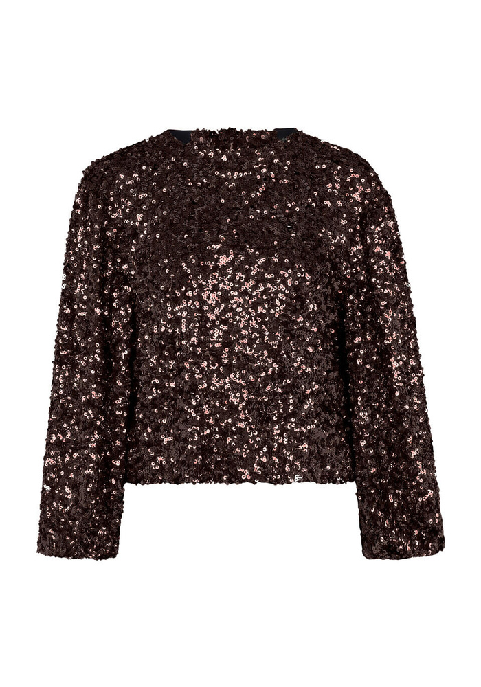 De Blom 2way sequins top van Studio Anneloes is een echte blikvanger. De sprankelende pailletten in een rijke Espresso tint spelen met het licht en geven elke look een chique, feestelijke uitstraling. Dankzij de soepele Travelstof voering voelt de top heerlijk comfortabel aan en beweegt hij moeiteloos met je mee — perfect om in te schitteren, van dag tot nacht.