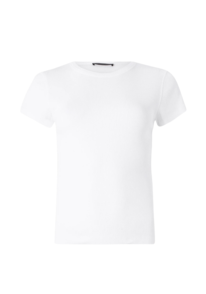 De Koale top van Drykorn is een t-shirt met een ribpatroon. De top heeft korte mouwen en een ronde hals.