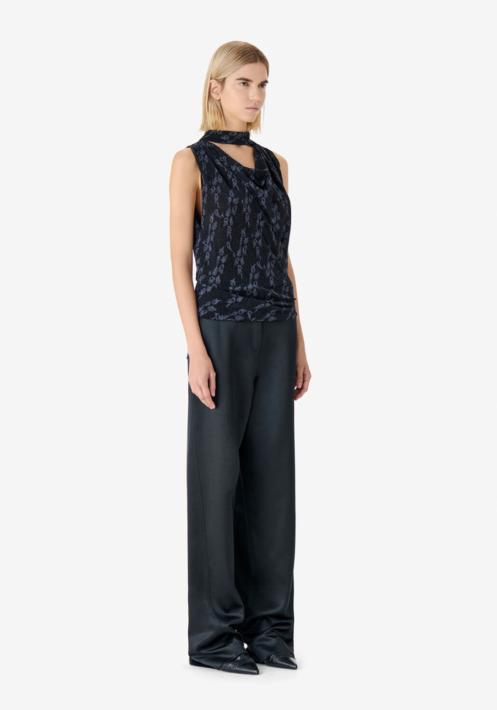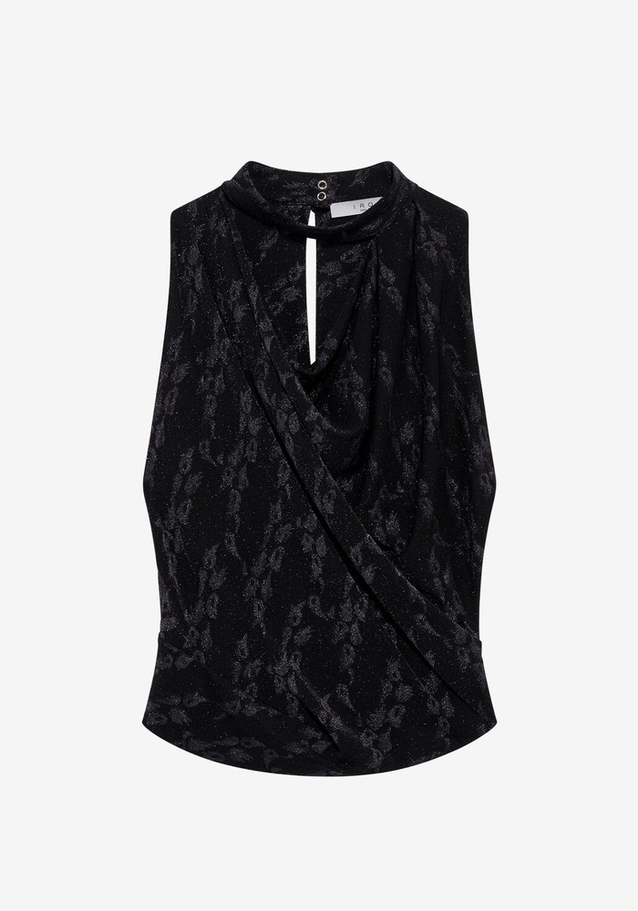 Deze wrapped top heeft een elegante hoge halslijn en een mouwloos ontwerp voor een verfijnde uitstraling. Het open rugdetail voegt een subtiel verrassend element toe, terwijl de gewikkelde en geplooide details het ontwerp extra diepte en textuur geven. De top heeft een reguliere pasvorm en lengte, waardoor hij gemakkelijk te combineren is voor zowel casual als meer geklede looks.