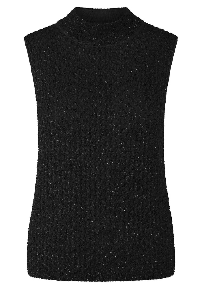 Elegante gebreide top van Marccain met een subtiel sprankelend gaatjespatroon. Het opengewerkte paillettenbreisel glanst zacht, terwijl de binnenkant heerlijk zacht aanvoelt.