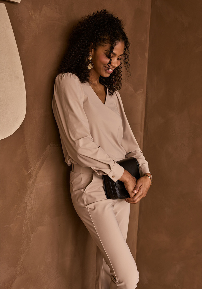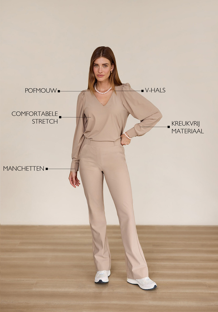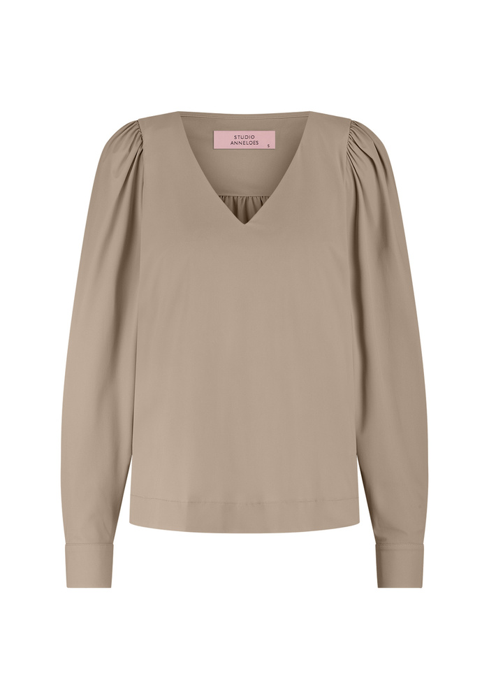 De Les top van Studio Anneloes is een elegante en veelzijdige top met v-hals en lange mouwen. De top heeft een regular pasvorm en plooien op de schouders.