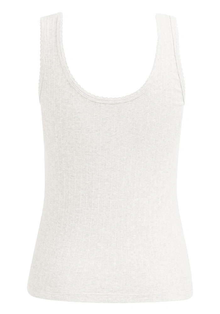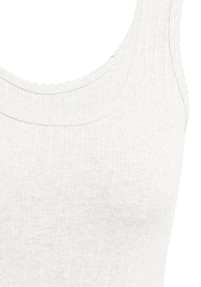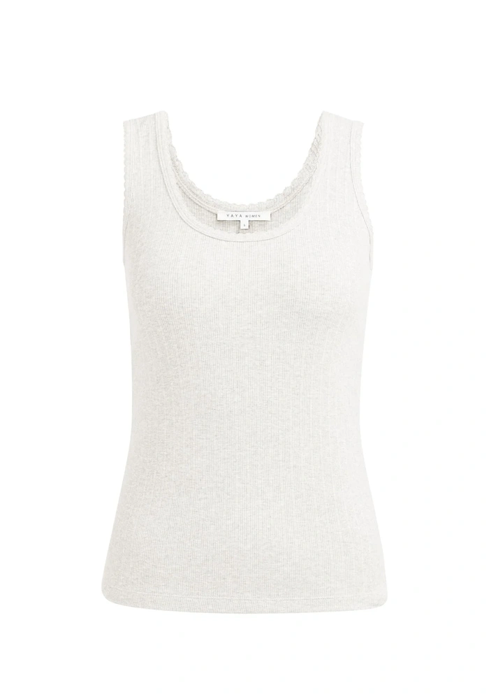 Dit singlet van Yaya is vervaardigd van een zachte, elastische ribstof en heeft een aangesloten pasvorm. De halslijn en armsgaten zijn afgewerkt met een subtiel golvend randje, wat zorgt voor een vrouwelijke en elegante touch. Ideaal om los te dragen op warme dagen of als comfortabele basis onder een blouse of vest.