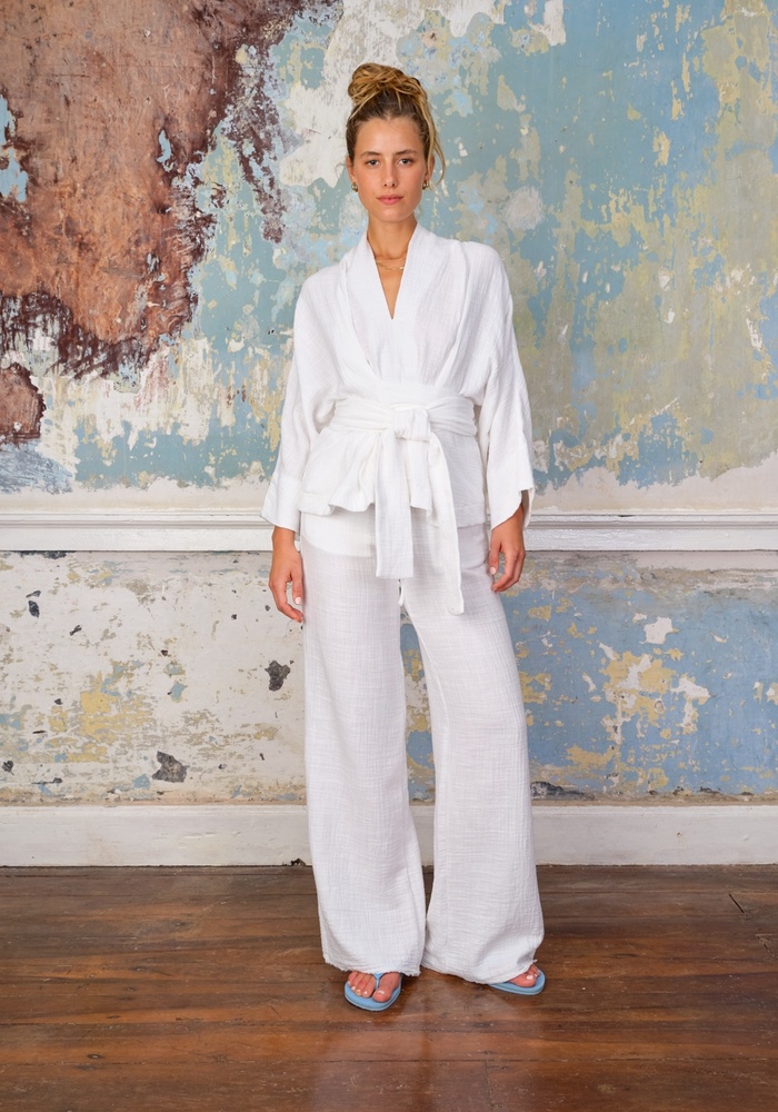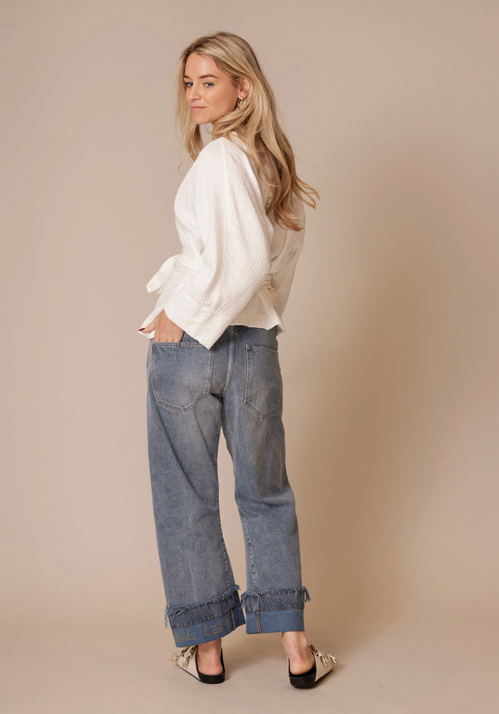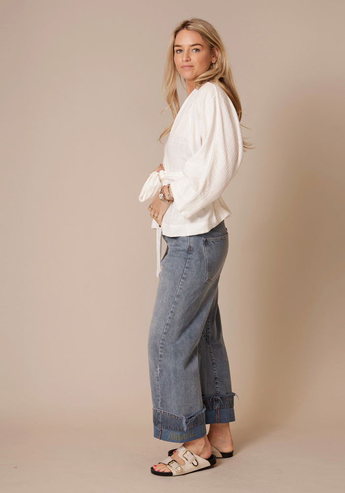 De Alaya top van Sea Me Happy is een elegante top. De top heeft wijde mouwen, een v-hals en heeft een ceintuur in de taille.