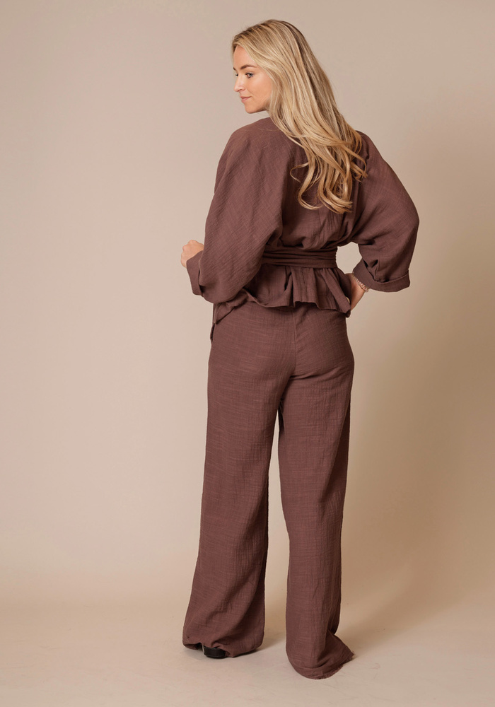 De Alaya top van Sea Me Happy is een elegante top. De top heeft wijde mouwen, een v-hals en heeft een ceintuur in de taille. Combineer de top met de bijpassende Riley pants van Sea Me Happy voor een complete look!