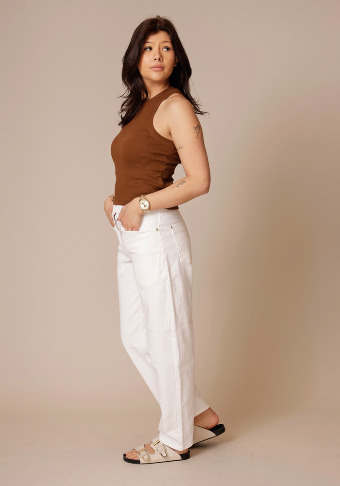 De Cinda top van Ba&sh in bronze is stijlvol en vrouwelijk. De warme kleur geeft elke outfit een elegante touch.