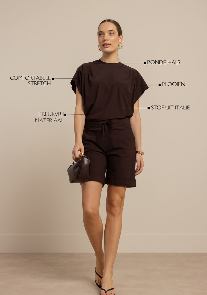 De Leona top van Studio Anneloes is een stijlvolle basic met een verfijnde uitstraling. De regular fit en subtiele plooien zorgen voor een vrouwelijk silhouet, terwijl de Italiaanse Medium Travelstof zorgt voor optimaal draagcomfort en een verzorgde look, de hele dag door.