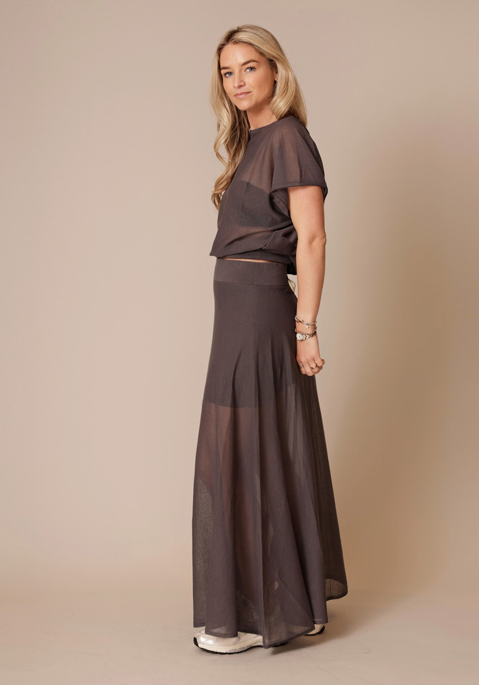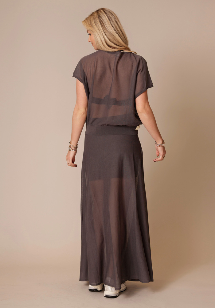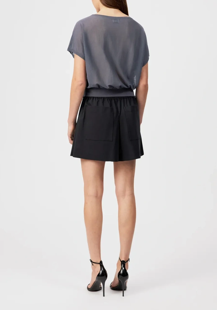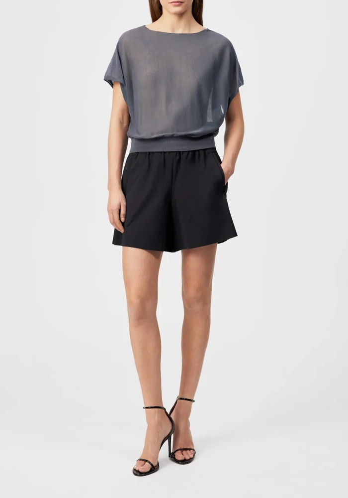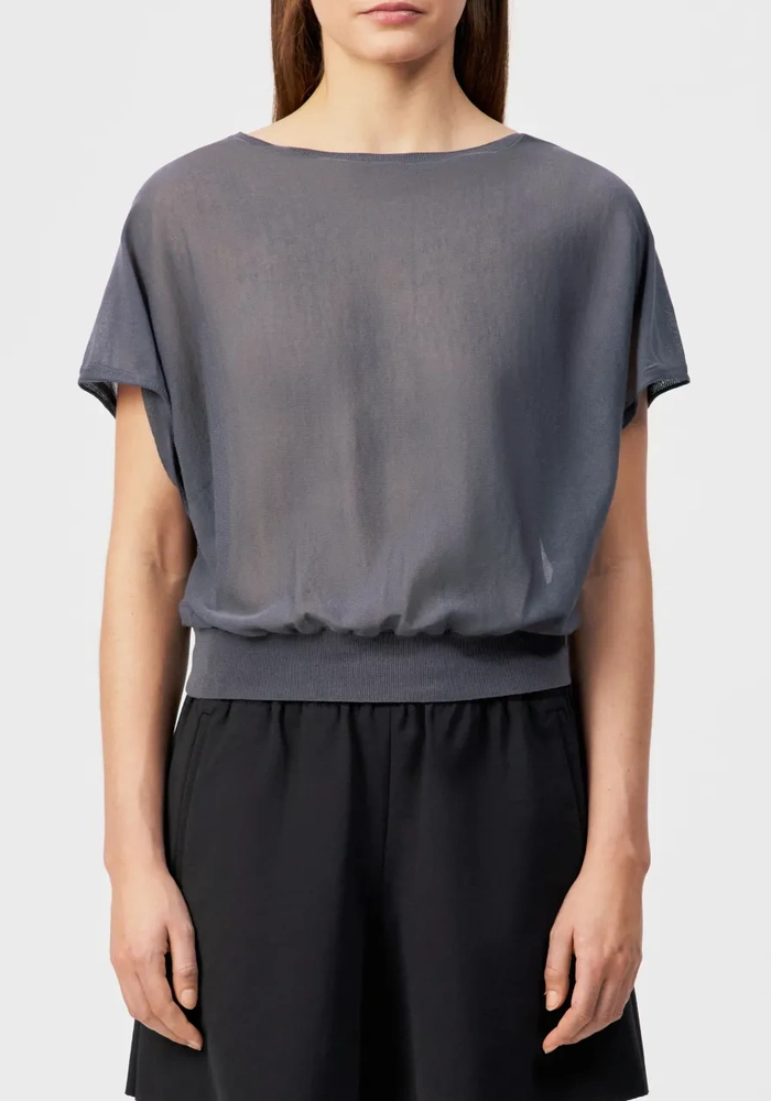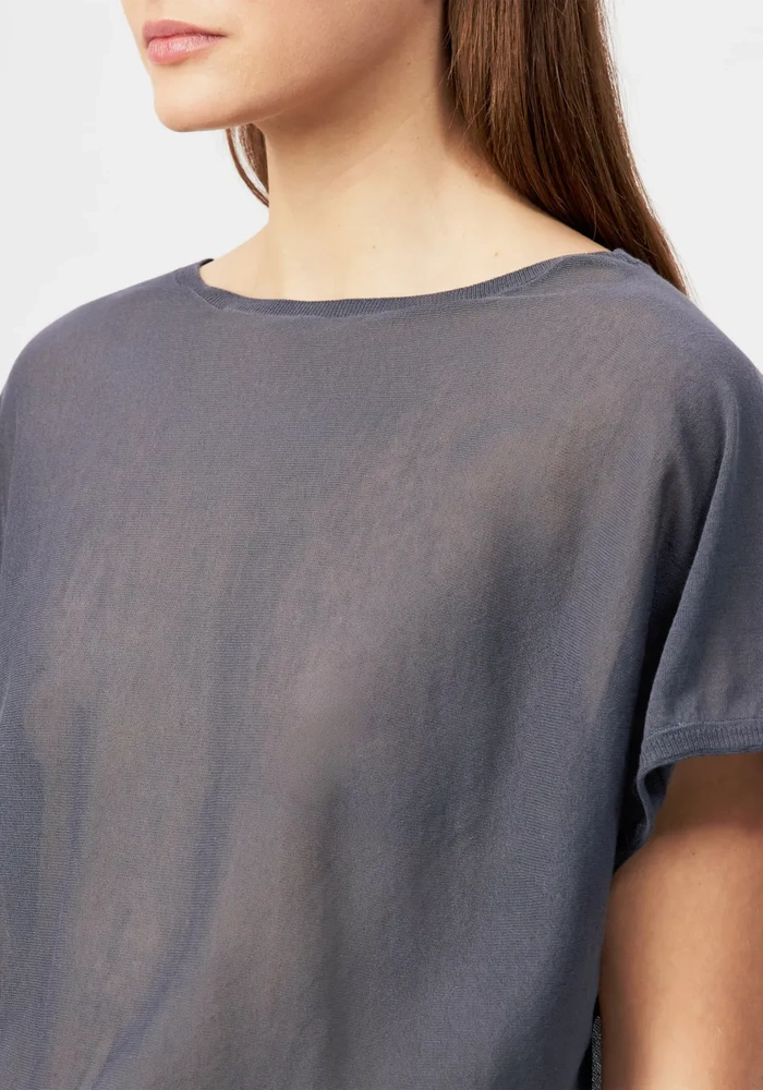 Gerlotta is een oversized T-shirt met een klassieke lengte en een zachte boothals voor een moeiteloos elegante uitstraling. Het fijne breimateriaal van katoen en polyamide geeft een lichte, matte look met een droge, comfortabele touch.