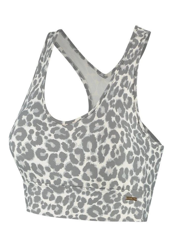 De Tara Top van Deblon in de Leopard Limestone print geeft je sportlook een opvallende en stijlvolle uitstraling. De cropped fit, racerback en ondersteunende stretchstof zorgen voor comfort en goede ondersteuning tijdens het sporten.