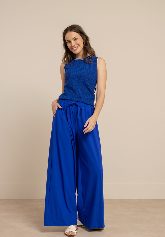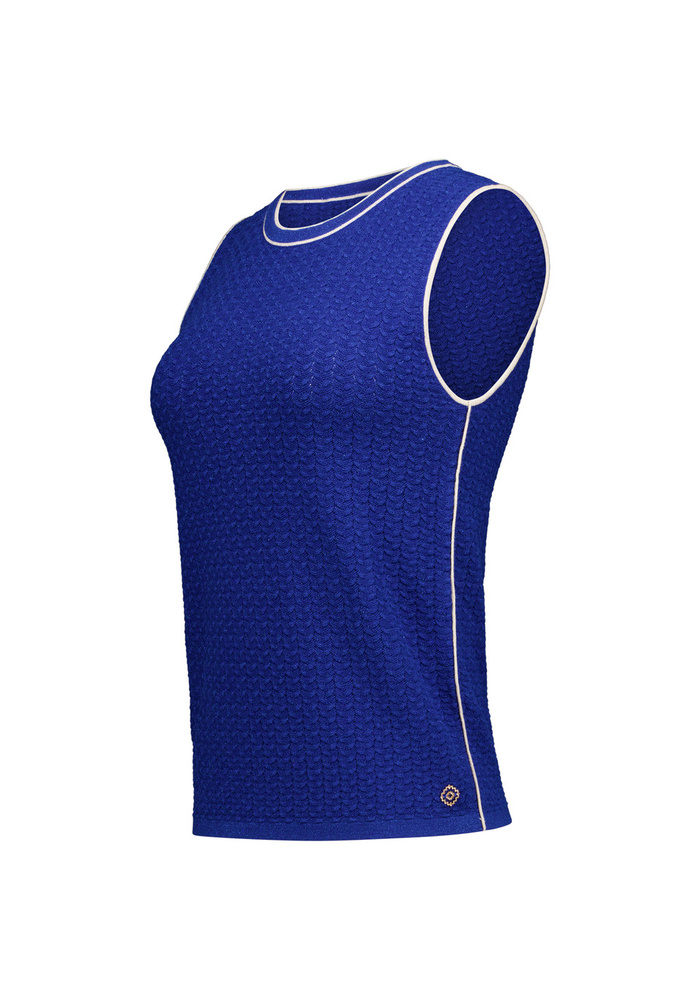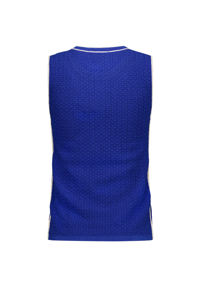 De Novi twinset singlet van Studio Anneloes is een elegante, mouwloze top in Electric Blue en Kit met een verfijnde uitstraling. Dankzij de luchtige Summer Knit, het streepdessin en het subtiele glittergaren biedt het item zowel comfort als een luxe touch.