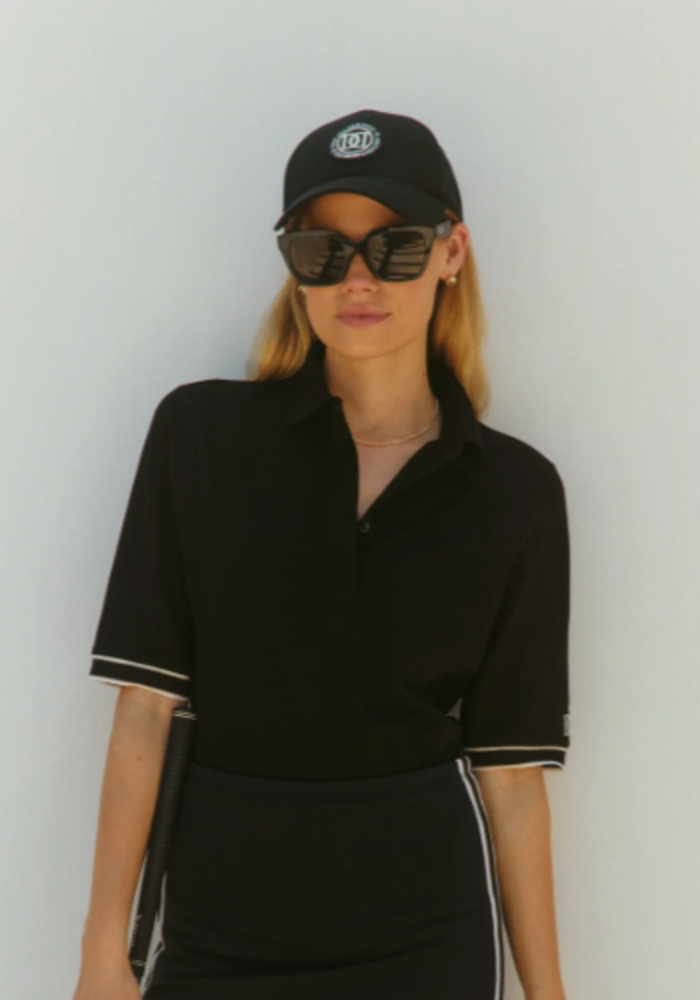 De Meline Short Sleeve Top van Deblon is een klassiek, preppy poloshirt met een elegante twist dankzij de blinde knoopsluiting en verlengde korte mouwen. Gemaakt van zachte, absorberende stretch piqué jersey met ribgebreide kraag voor comfortabel en stijlvol draaggemak.