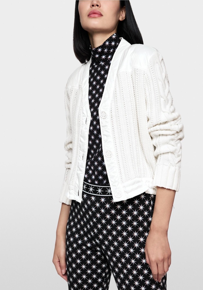 Deze cardigan van Marccain is een gebreid vest met lange mouwen en een v-hals. Het vest heeft een knoopsluiting aan de voorzijde.