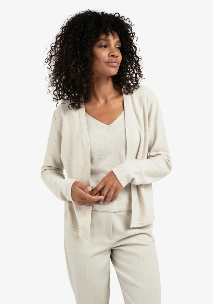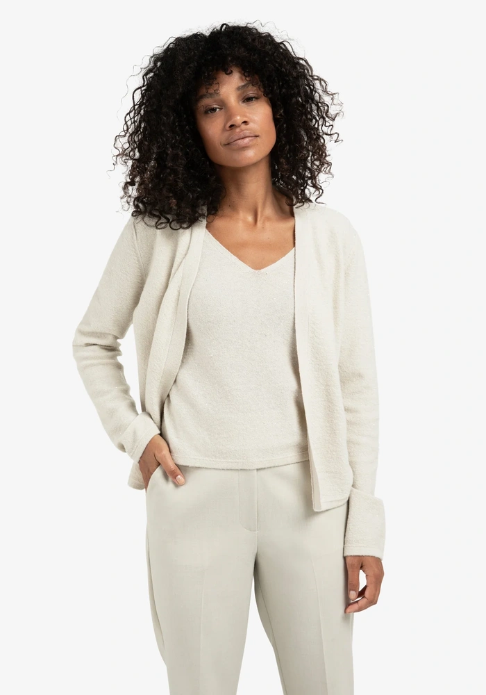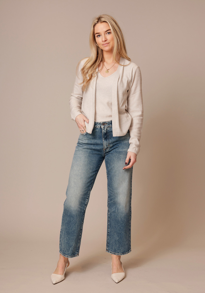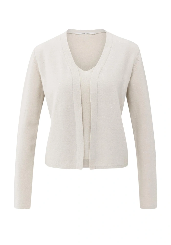 Dit spencer vest van Yaya is een gebreid vest met subtiele pailetten. Het vest heeft een rechte pasvorm en heeft lange mouwen.