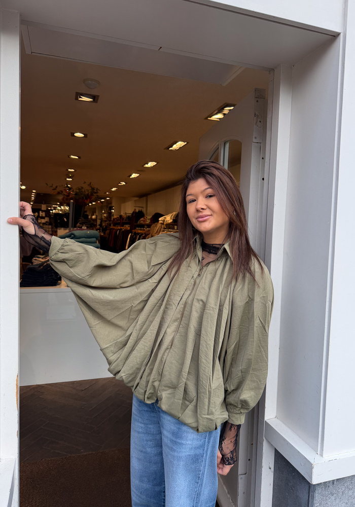 Deze top van Musthaves by Gentle is een ballonjasje met vleermuismouwen. De top heeft een ritssluiting aan de voorzijde en heeft halflange mouwen.