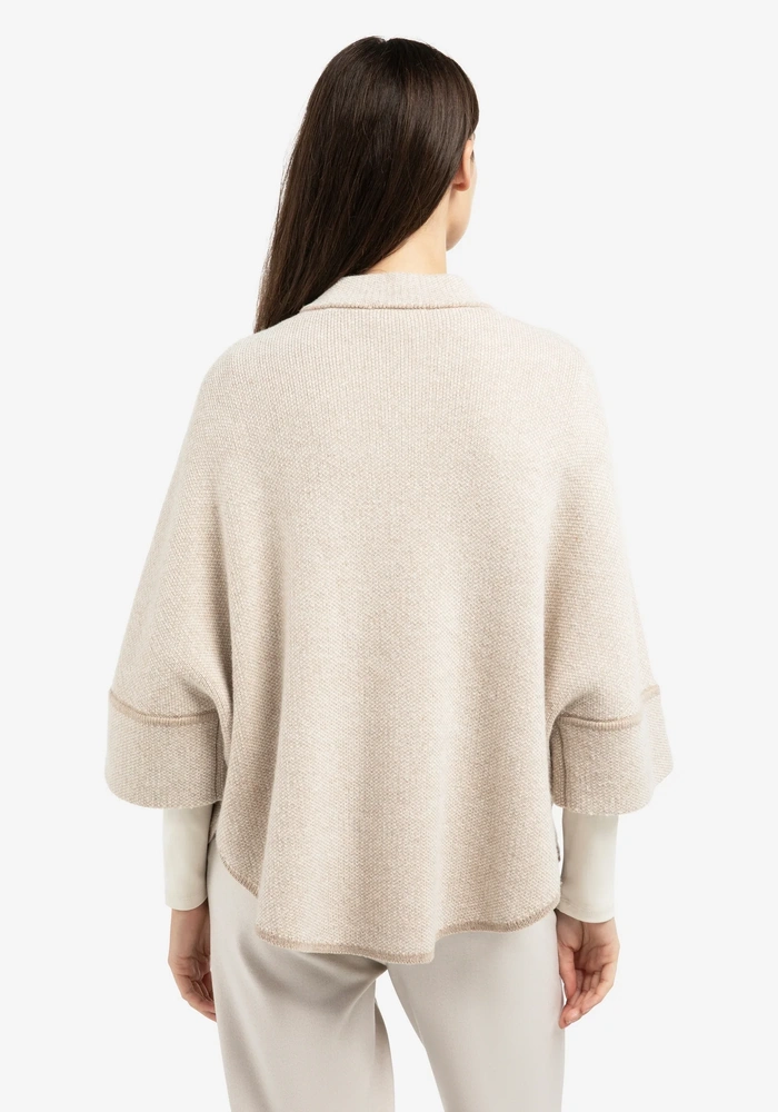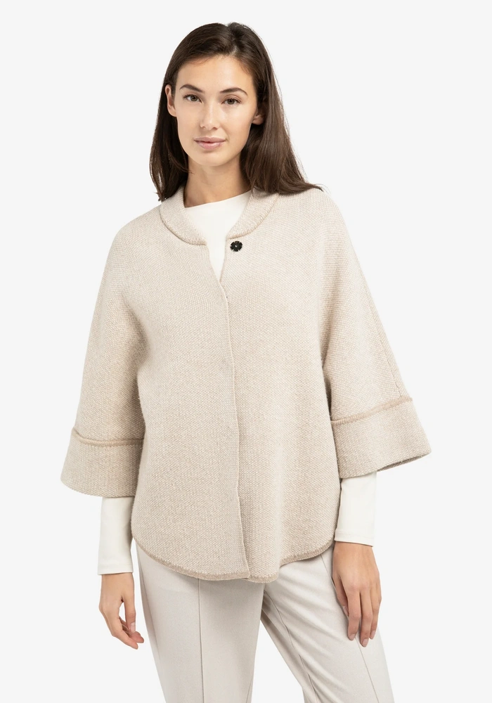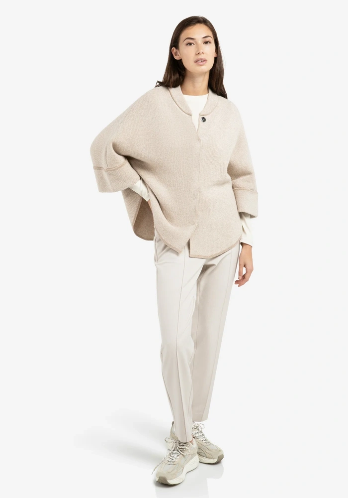 Deze verfijnde poncho van Yaya is jacquard gebreid en heeft een ruime, oversized pasvorm met een ronde zoom. De driekwart mouwen en het zachte materiaal bieden comfort met een elegante uitstraling. Afgewerkt met een subtiele kraag en zichtbare naaddetails voor een moderne touch. Perfect voor het creëren van stijlvolle laagjes.