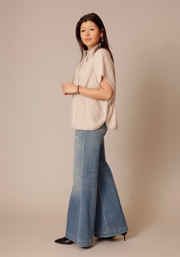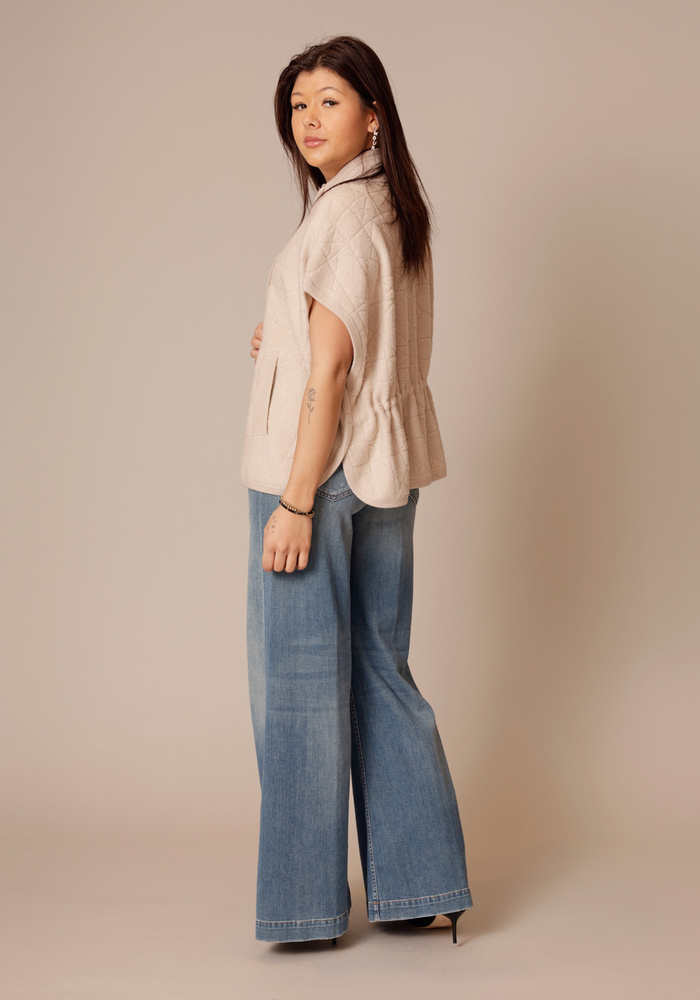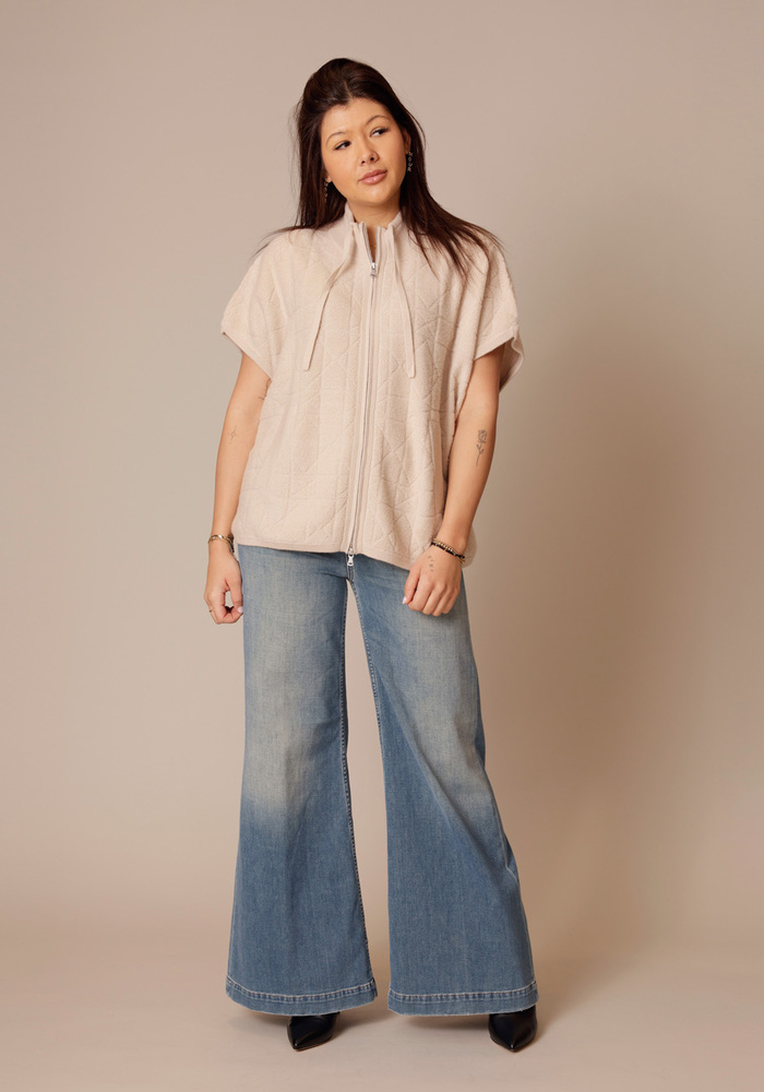 Dit prachtige vest van Repeat heeft korte mouwen en is getailleerd bij de taille. Het vest heeft een rits en kan leuk gestyled worden met een blouse of sweater eronder.